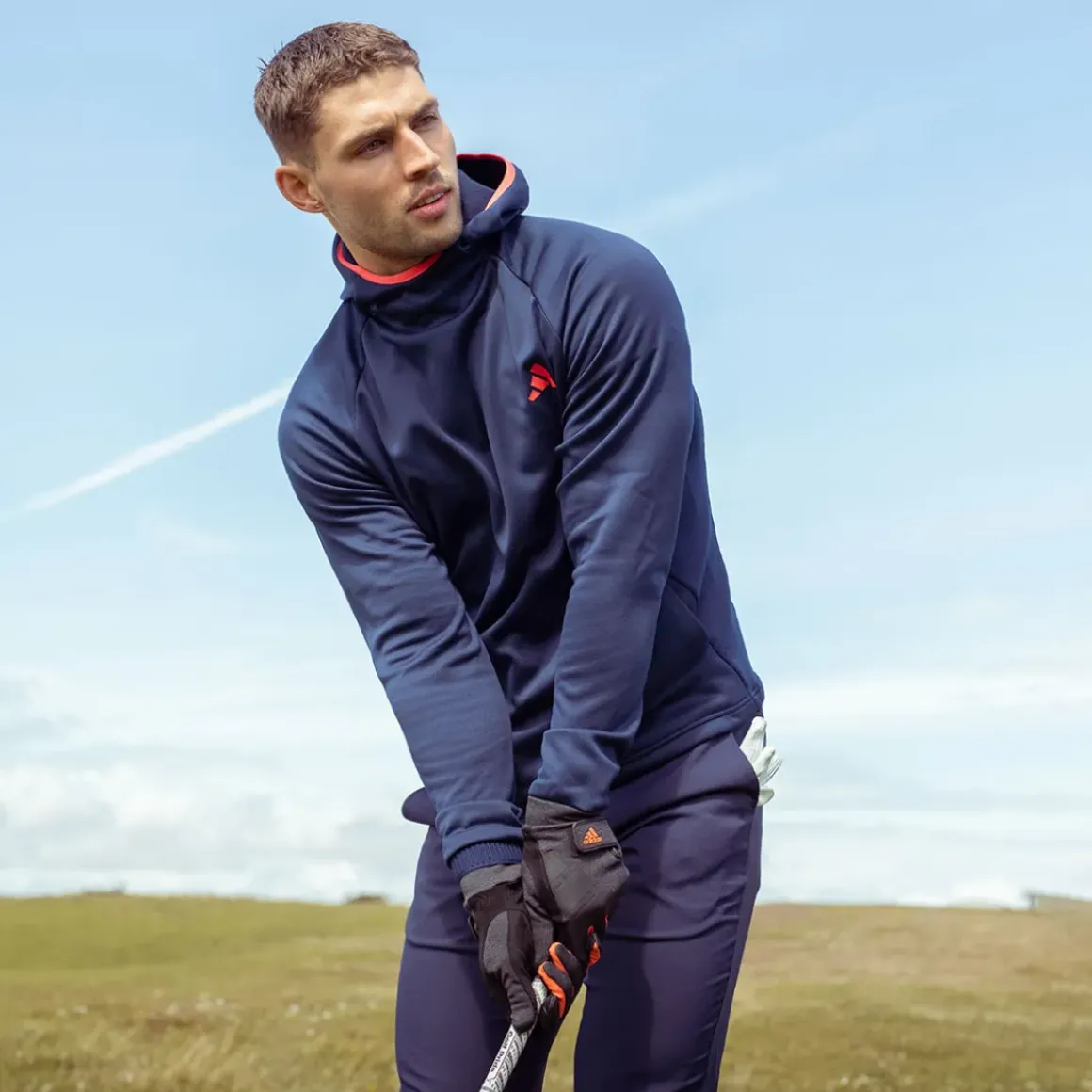 These gloves are constructed with a double-knit polyester fabric for warmth and comfort as you play golf. A practical glove to keep your hands warm during cold weather, and have a faux suede palm and touchscreen-compatible thumb and index fingers so you can use your phone or GPS device, in between holes. The hook-and-loop strap lets you cinch up the fit, so you can swing through with confidence. .