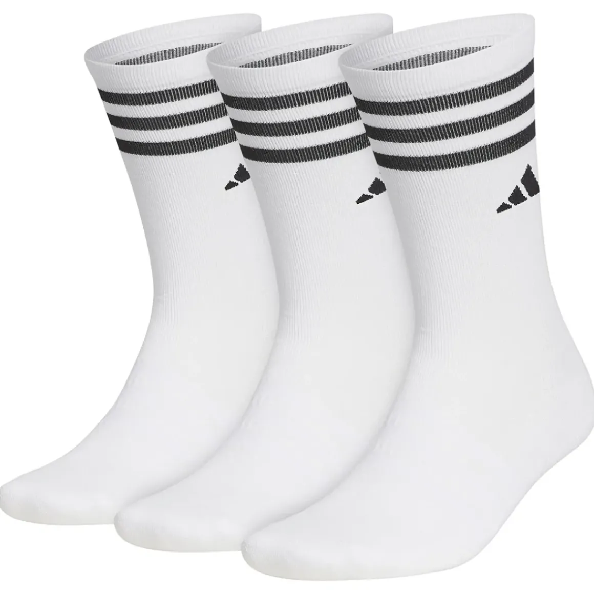 These crew-length adidas Golf socks feature mesh to keep your feet ventilated and a compression instep to adds support through your round of golf. Highlighted with 3-stripes around the top and a badge of sport for maximum appeal. Made with recycled content fabric and support for sustainable cotton farming.