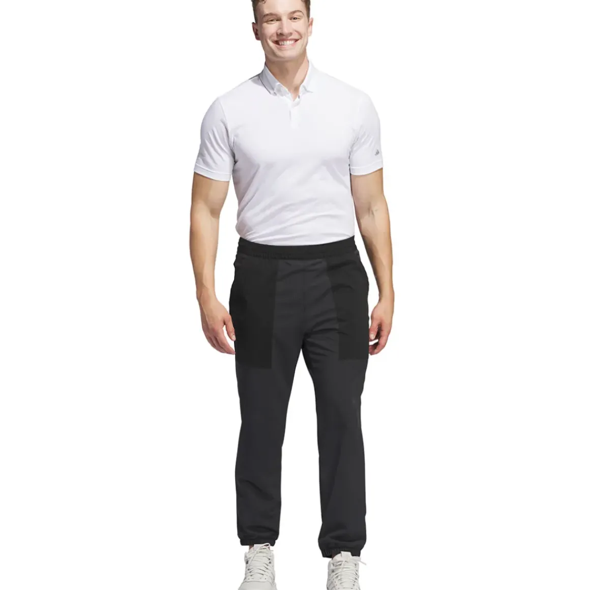 These adidas Golf Go-To Warm trousers wear well during breezy rounds, as are equipped with WIND.RDY technology. This protects you from the gusts and fends off light showers so you can play through unsettled weather. The exposed elastic and hybrid knit woven mix provide durability and practical style, and roomy pockets add versatility. The trousers are highlighted with an iconic performance logo above the back pocket adding an adidas touch