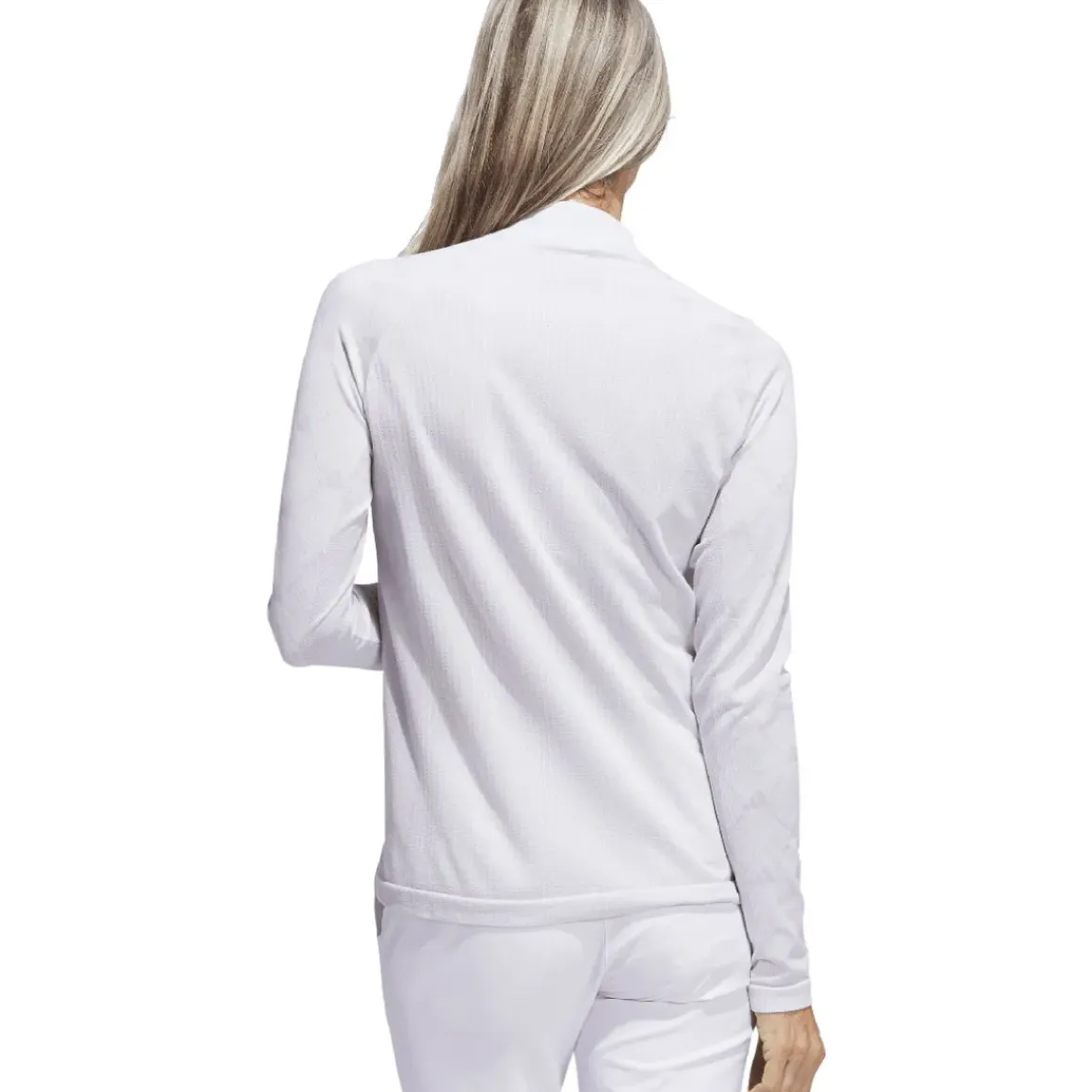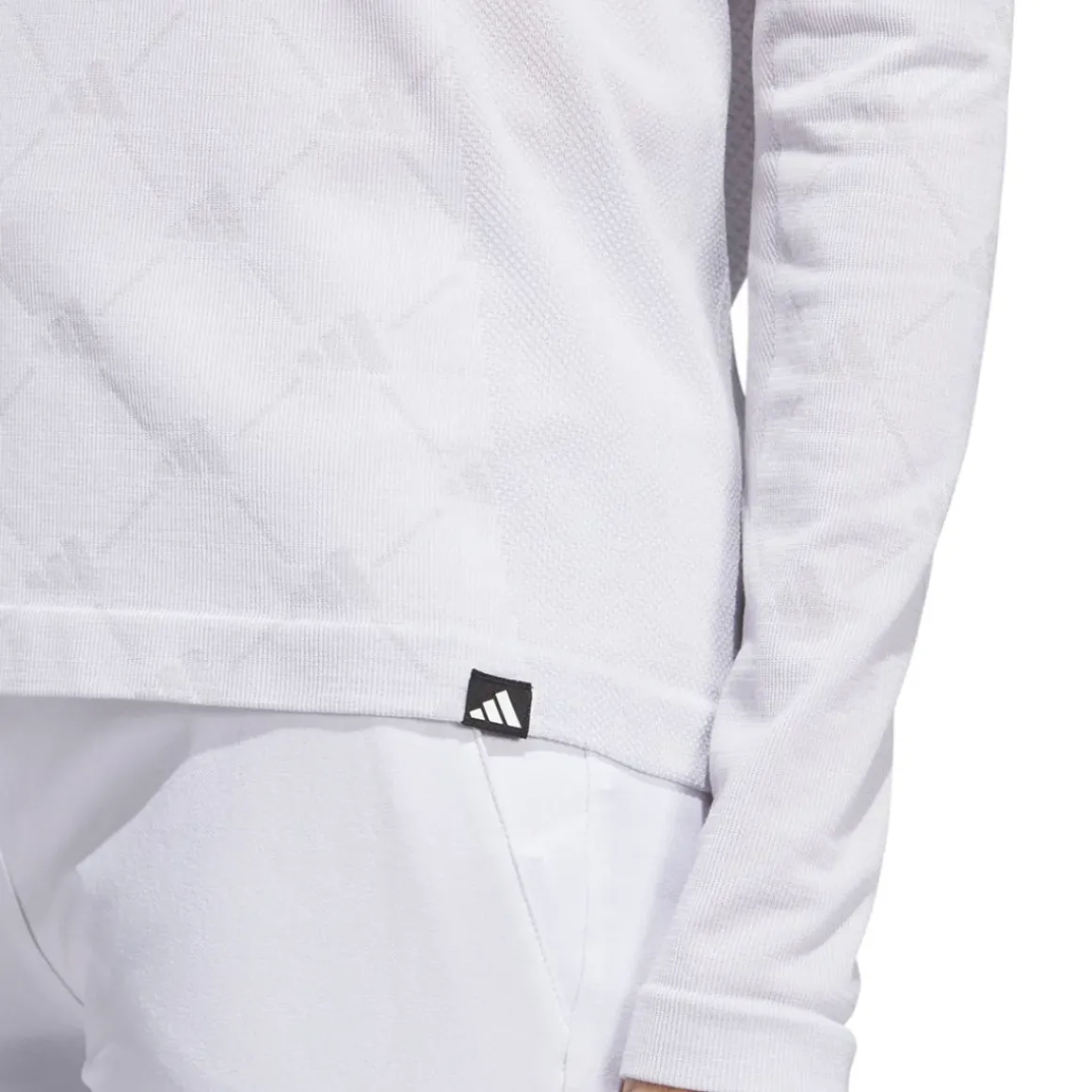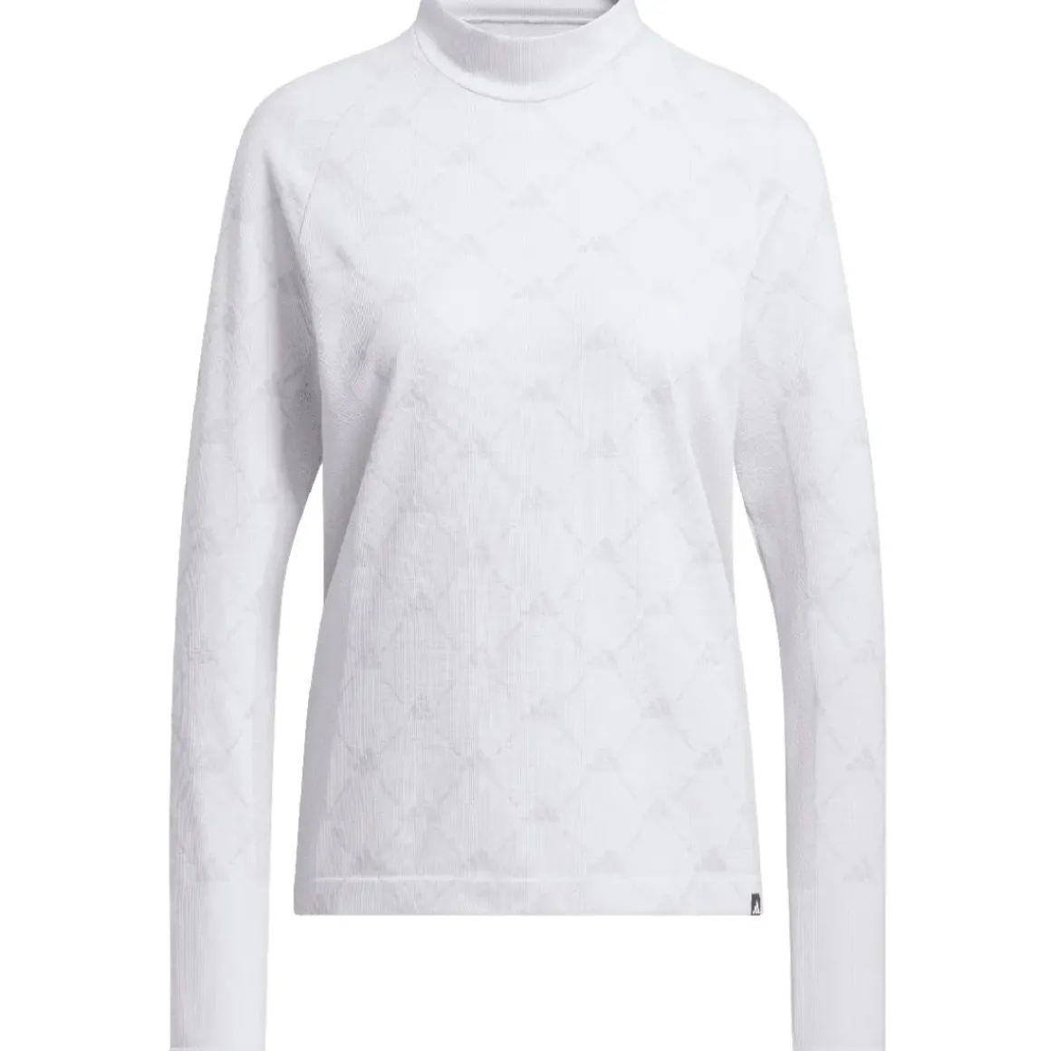 For a little extra coverage, and a lot of extra style, this golf base layer delivers. The long-sleeve design with a mock neck offers warmth during cold-weather rounds, and a monogram print shows off your adidas love. The fabric mix includes moisture-wicking wool to keep you dry and comfortable. Four-way stretch ensures a full range of motion from tee to green x 18. Made with a series of recycled materials, and at least 70% recycled content, this product represents just one solution to help end plastic waste.