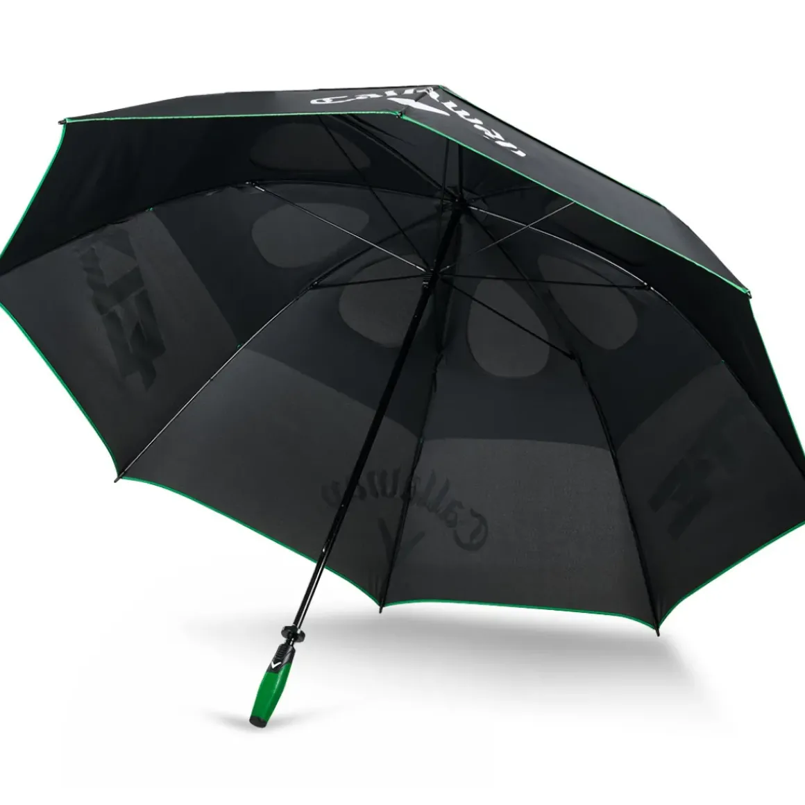 Callaway Golf has delivered in style with a huge 68" double canopy that gives you all the cover needed to keep you and your gear dry. Employing a double canopy assists in spilling wind through the canopy to prevent the umbrella from collapsing or inverting. It features an ergonomic non-slip handle for a comfortable carry and a manual opening mechanism for quick deployment. The umbrella is constructed with a robust fibreglass frame and shaft, tough enough to withstand heavy wind, giving strength and flexibility. It is highlighted with the latest hardware branding for authentic appeal.
