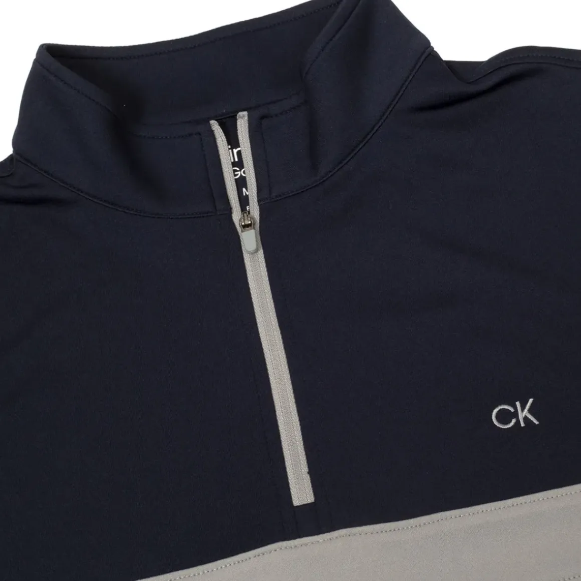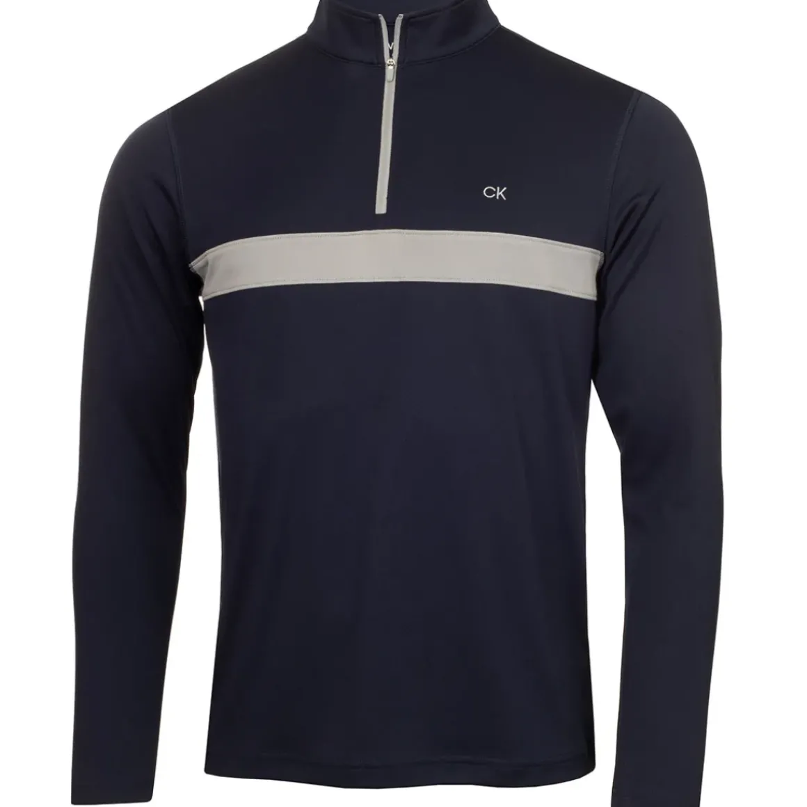 This half-zip mid-layer from Calvin Klein golf sports a contrast cut and sew panel across the chest for a cool and crisp look. Made from a lightweight and breathable smooth jersey fabric for all-day comfort, the ideal layer for work or play. Highlighted with a zip-up collar, a CK logo embroidered on the left chest, and a signature woven flag label on the lower left side seam .