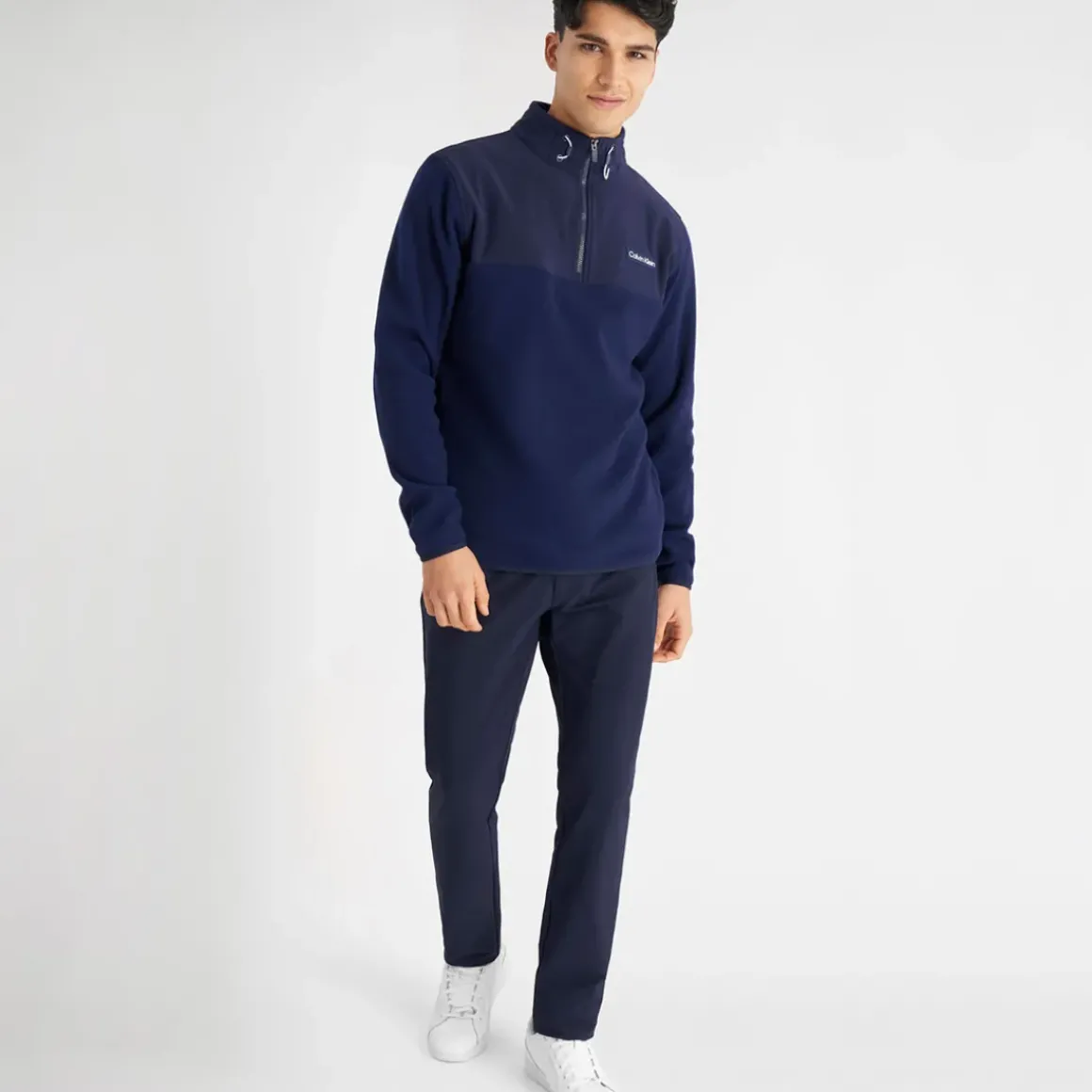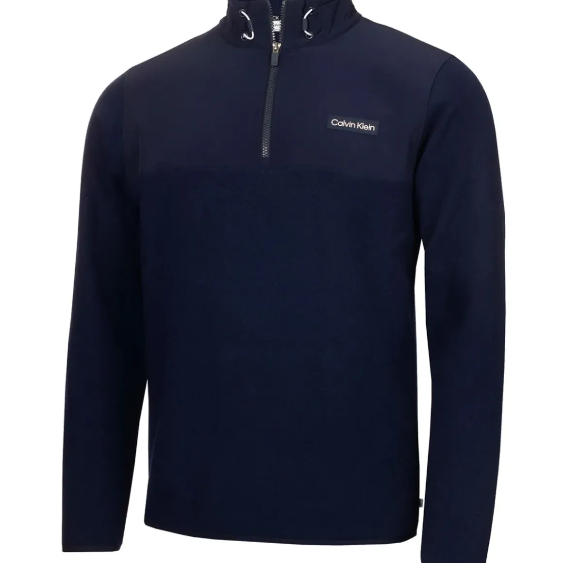 Stretch enhanced throughout from the 4-way stretch of the fleece to the microfibre panels at the upper chest and collar. The soft and durable polar fleece fabric of this Calvin Klein mid-layer makes this a stand-out addition to your sporting wardrobe. Complete with a drawstring collar which allows for an adjustable fit.