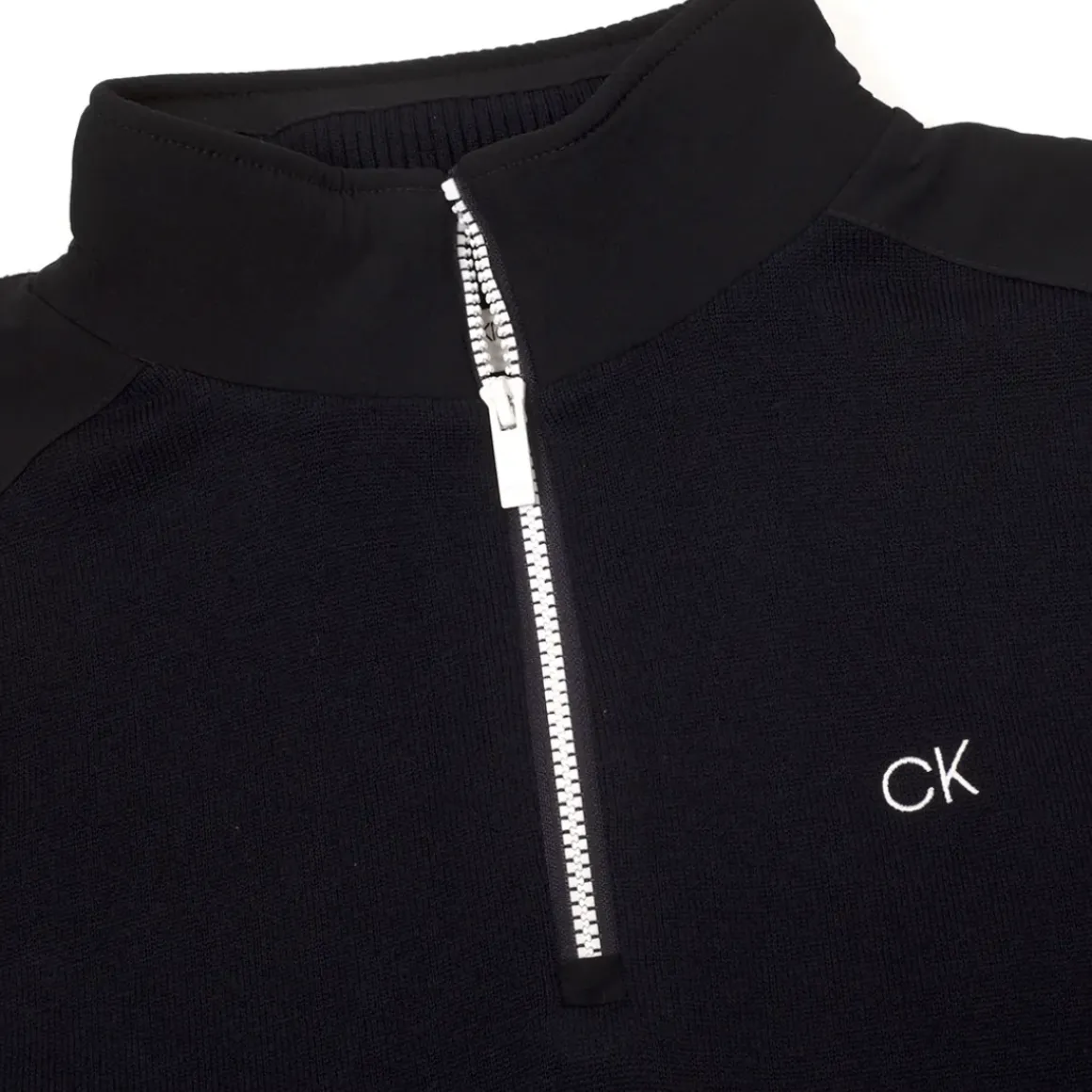 This knitted Calvin Klein mid layer is an exceptional piece of layering, understated in style and combined with high-performing fabrics. The layer offers high breathability and natural stretch for comfort and mobility as you play golf. Complete with performance microfibre on the shoulders and collar, and a half-zip opening for adjustable cooling. The mid layer is highlighted with a CK logo on the front left chest, and features a ribbed knit hem, cuffs, and inside collar for a comfortable fit