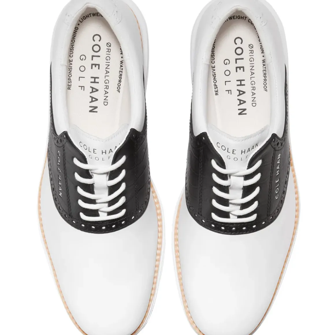 Classic style meets modern performance in the Cole Haan ØriginalGrand Saddle golf shoe.