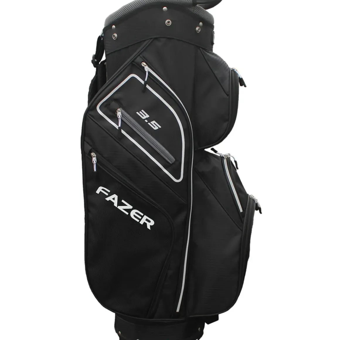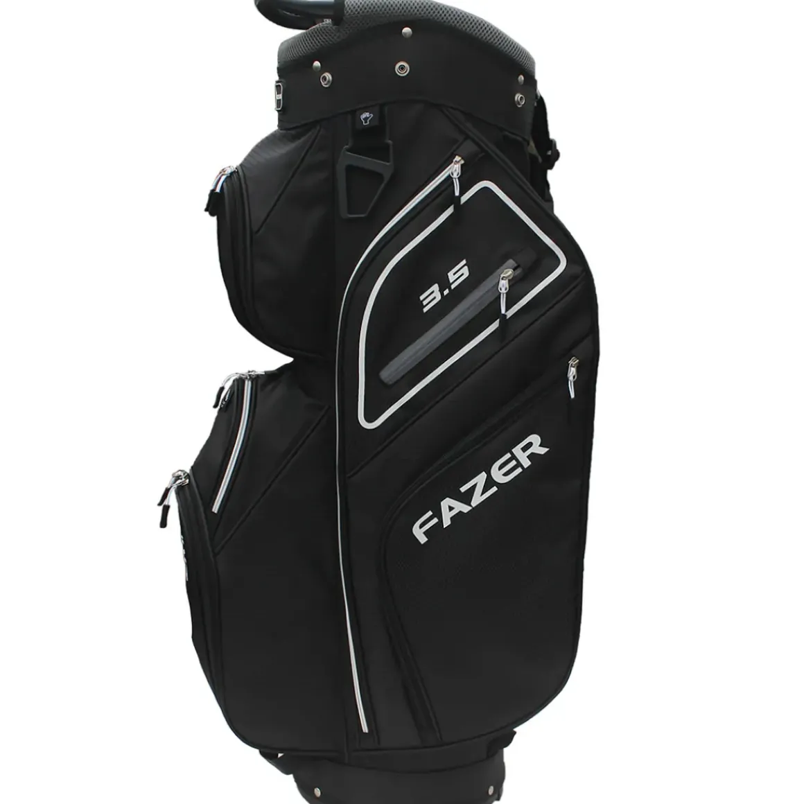 Transport all your clubs with ease in this strong, durable and lightweight 3.5 cart bag. Its helps keep your clubs organised due to the 9″, 14 way graphite friendly separator top and 3 full length club dividers. For your convenience and storage, the bag comes with a total of 9 zippered pockets that include a full length clothing pocket, velour lined valuables pocket and an insulated hydration bottle pocket