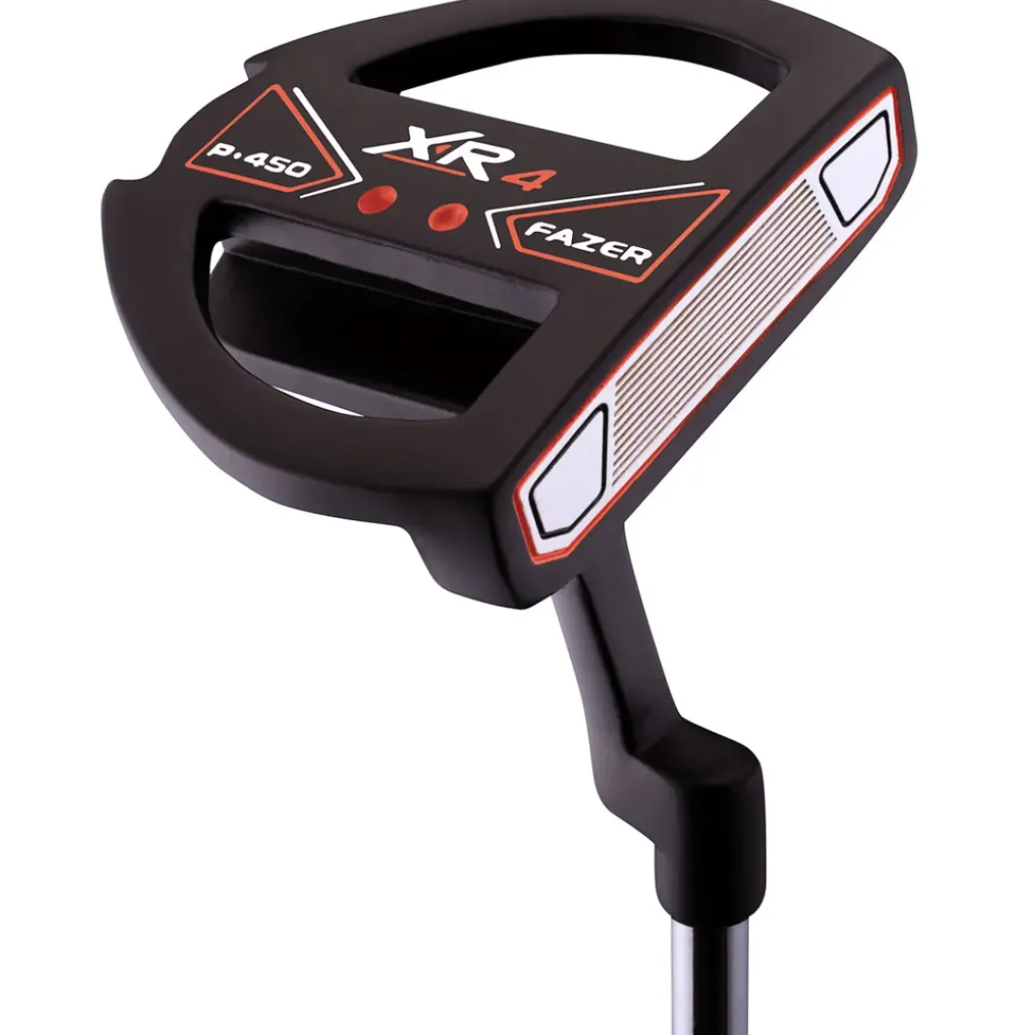 Improve your putting ability with the XR4 putter from Fazer. The incredible feel of the oversized grip allows for a far more comfortable feel in your hand, plus reduces wrist turn for more putting consistency. It has a high-contrast clubface that gives great acoustics and feel, combined with scorelines which help to improve ball roll for better distance control.