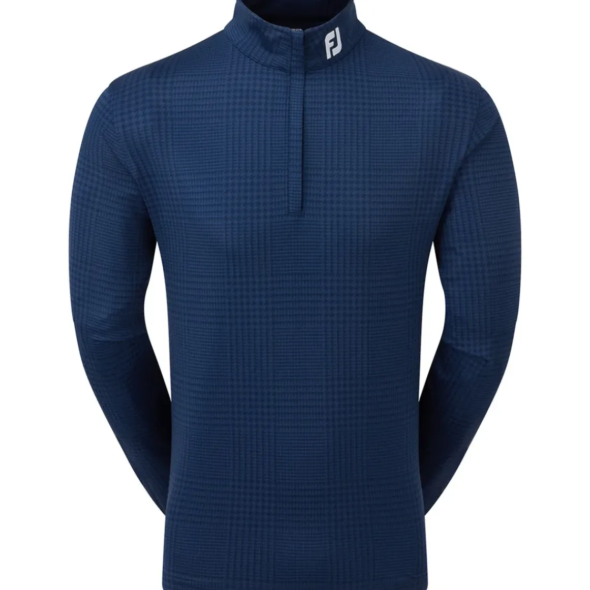 This premium FootJoy mid layer has a stretch jersey twill fabric construction for performance. That is equipped with moisture-wicking technology that draws moisture away from the body, and is easy care to minimise wrinkling for fewer distractions as you play golf. The layer has an all-over glen plaid print for added style, and contrast collar and rear yoke FJ logos for authenticity.