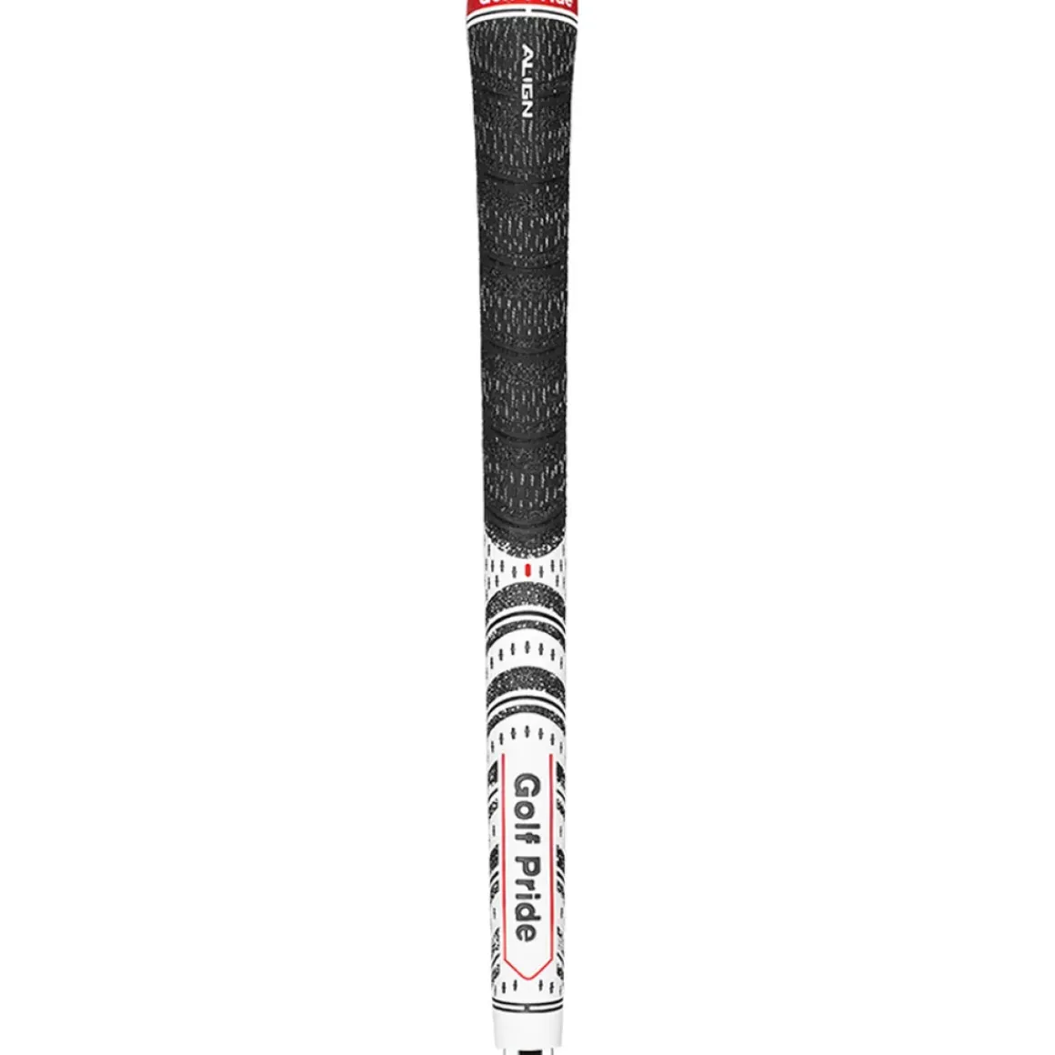The Golf Pride MCC Align grip is the perfect all-weather grip, which provides consistent hand placement for better accuracy playing golf. This multi compound golf grip has Align Technology to help you square the club face more consistently, with a micro-diamond distinctive ridge texture. This firmer red ridge rises and extends down the back of the grip to aid better hand alignment locking the hands in the correct position every time.