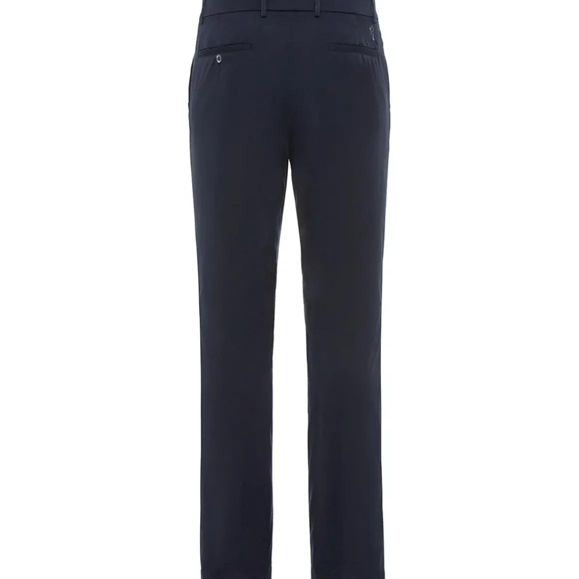 The special functionality of these classical golf trousers can be attributed to the clever choice of material. GOLFINO downswing trousers are well equipped for the most diverse weather conditions, sunshine or drizzle, as they feature fast-drying material that always creates comfortable wearability. Cut with a regular fit for comfort, these trousers will impress the enthusiastic golfer with the soft inner lining. Complete with practical side pockets and a ball marker, which is attached to one of the front belt loops. Plus highlighted with a decorative embroidered golfer logo under the waistband.