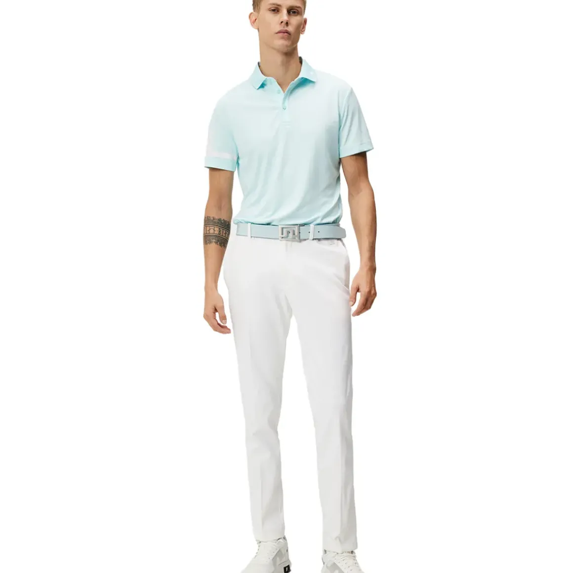 This iconic knitted pique polo shirt is sure to give you the inspiration to play better golf. Constructed with a technical 4-way stretch for an unrestricted swing as you play golf, and equipped with fast drying and moisture-wicking capabilities. A system that works by wicking sweat away from the body, aiding in rapid evaporation. The design features a 3-button placket and rib collar, plus is highlighted with a printed J.Lindeberg bridge logo with mesh structure on the sleeve and embroidery bridge on the collar.