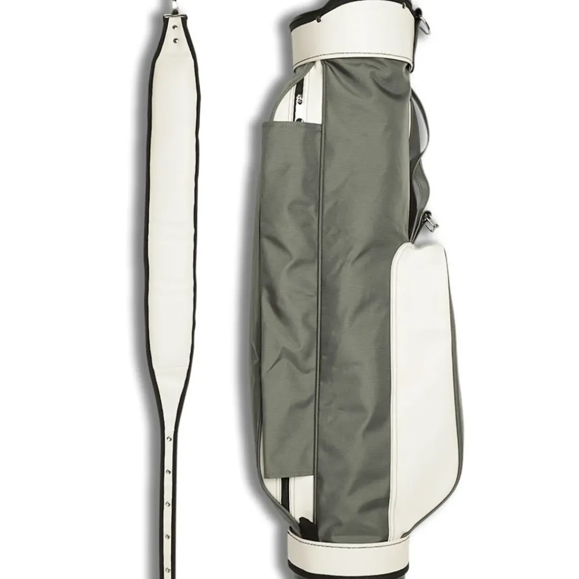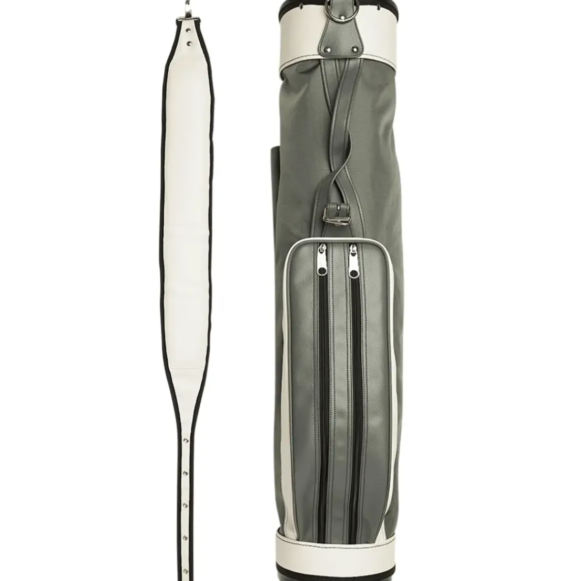The Jones Original carry bag is retro-inspired and compact to keep the game simple. The design is one of the most iconic in the golf game, made from a water-resistant nylon material to keep your gear dry from the elements. It has a 7.5" top cuff with a 3-way club divider system to separate your clubs for easier selection. It also has 2 front pockets and 1 rear pocket to store your essentials, and a single padded shoulder strap for comfort as you carry. Weight: 3.1lbs
