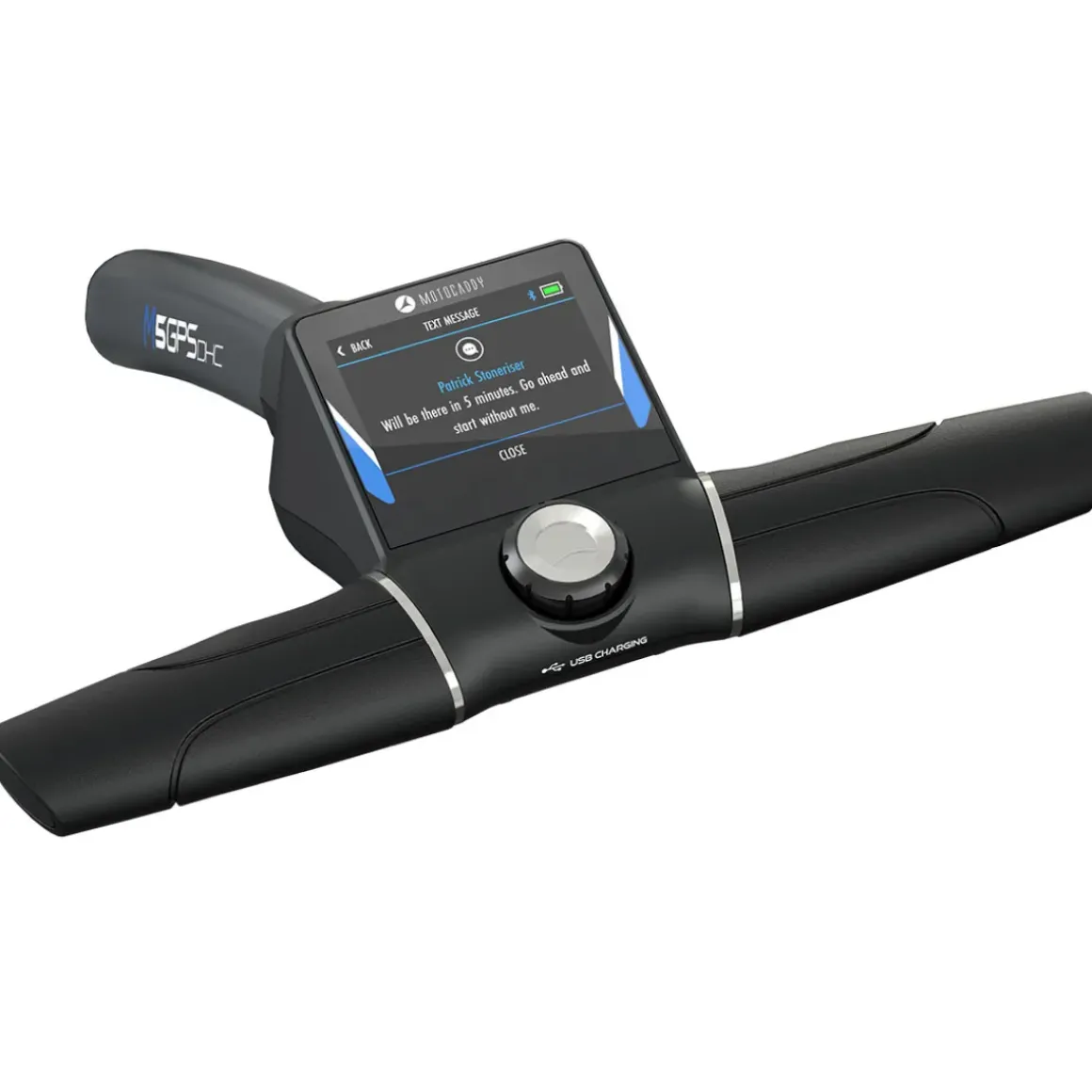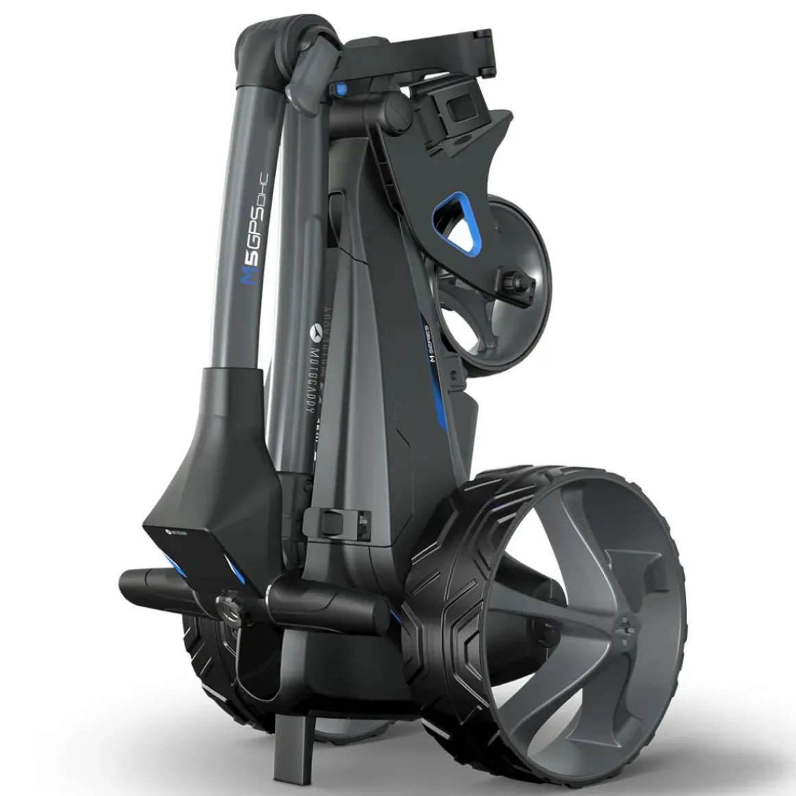 The award-winning Motocaddy M5 GPS electric golf trolley offers fast, accurate, high-performance GPS through its super responsive crystal-clear 3.5" touchscreen display. The latest 2024 model includes a revolutionary new CLICK ‘N’ CONNECT® cable-free battery with auto-disconnect and pop-up charging port, automotive-inspired styling, new style ergonomic handle grips, redesigned sporty tyres, and compatibility with the new M-Series Anti-Tip wheel.