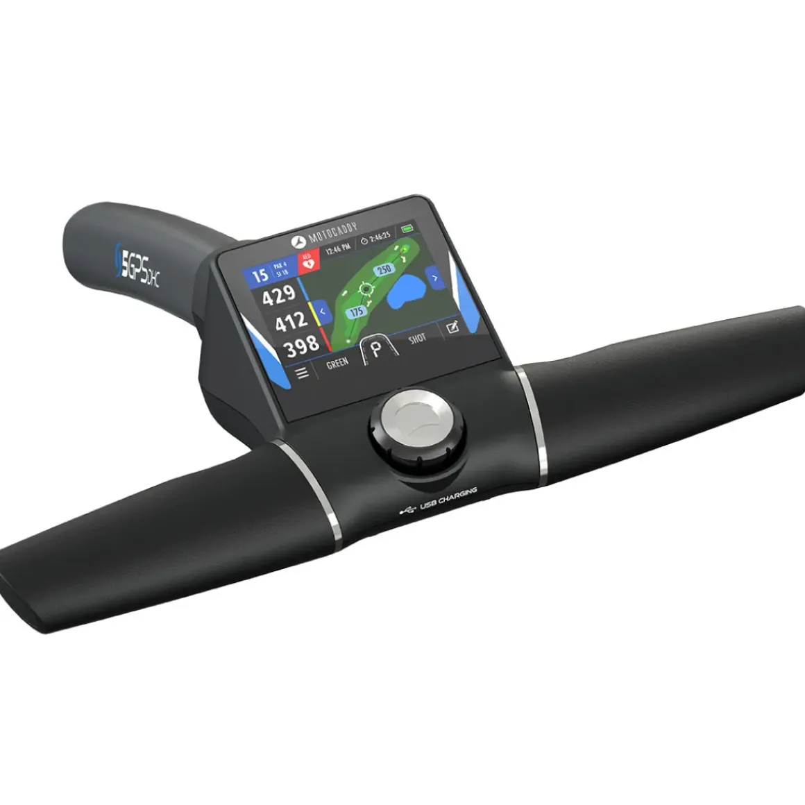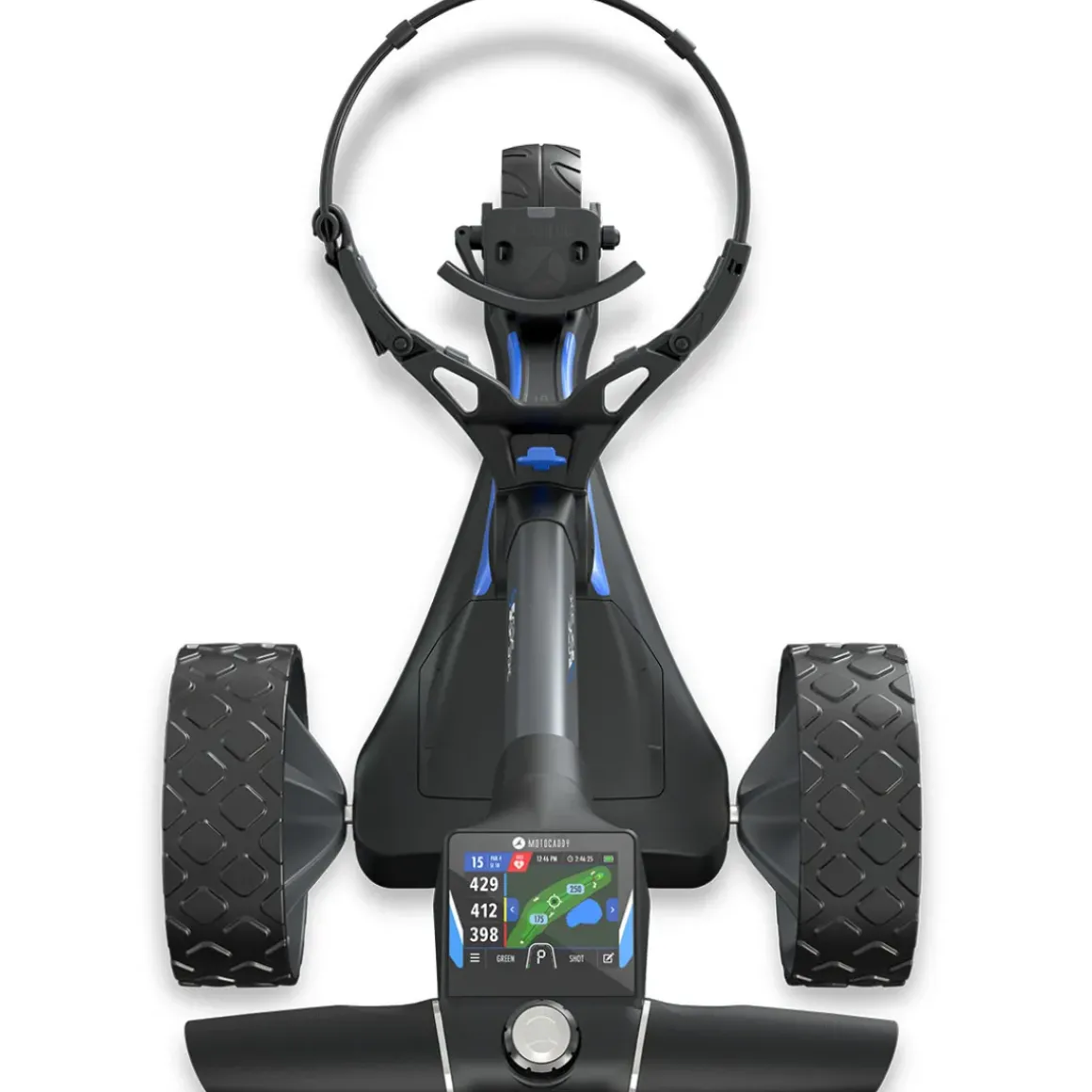 The Motocaddy S5 GPS DHC electric golf trolley is compact and easy to fold, offering fully‑integrated GPS for over 40,000 pre-loaded courses through its super-responsive 3.5” touchscreen display. Complete with Downhill Control (DHC) technology allows it to maintain a constant speed travelling down hills, while also boasting an electronic parking brake.