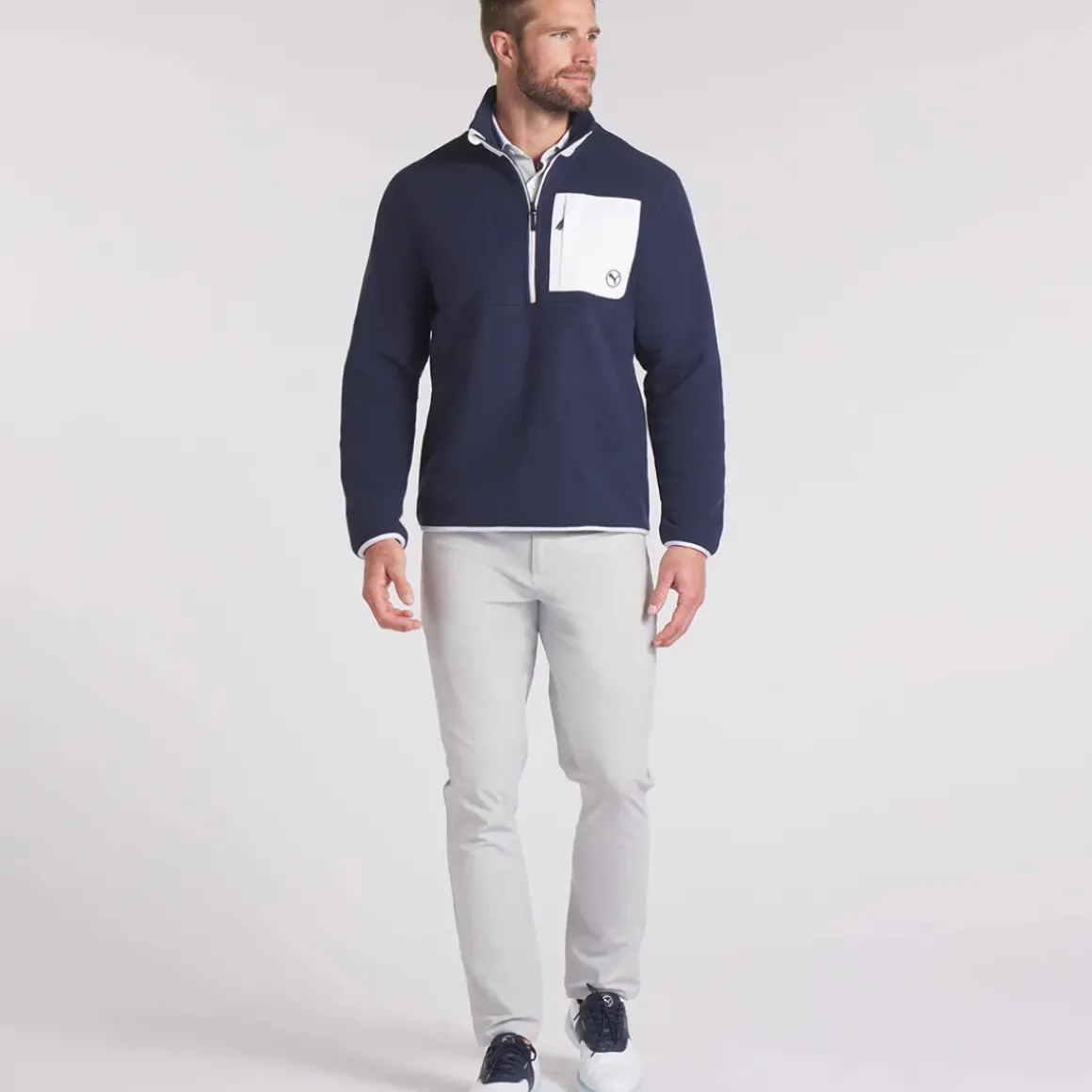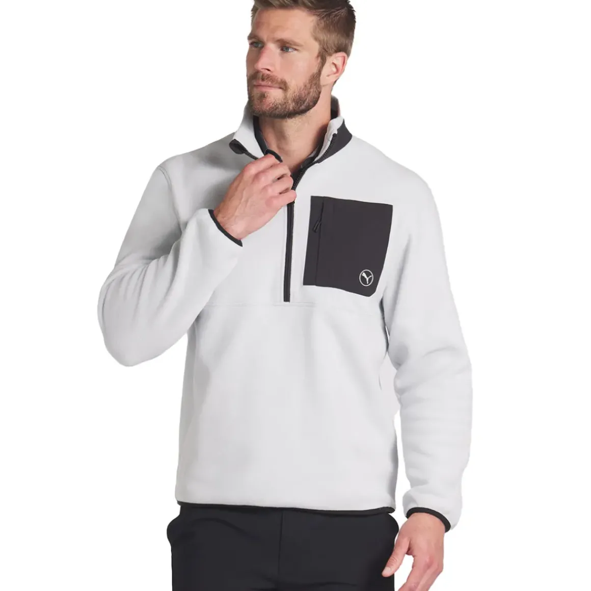 This PUMA Golf layer is designed with the cold in mind, constructed with polar fleece and a brushed interior that is prepared to keep you warm through the coldest rounds. The mid-layer has a technical stretch for mobility and offers UPF 50+ protection to keep you safe on the fairways. Equipped with a half-zip opening for adjustability and a handy chest pocket for storing your scorecard etc.