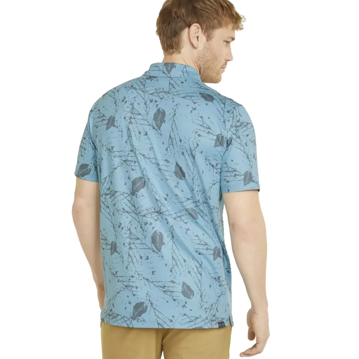 This ultra-soft polo shirt has been constructed with a soft cotton-like CLOUDSPUN circular knit fabric that offers moisture-wicking to keep you dry as you perform. It has a performance 4-way stretch for better mobility to feel confident to play and tee it up. The design features an all-over fossilized leaf texture and a PUMA Cat logo on the left sleeve for authentic appeal.