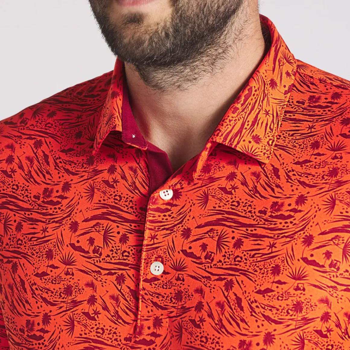 This PUMA Golf polo shirt has been constructed with an ultra-soft cotton-like CLOUDSPUN circular knit fabric that offers moisture-wicking to keep you dry as you perform. It has a 4-way stretch for better mobility and peak breathability ensuring you’ll be ready for whatever the golf course throws at you. Highlighted with an all-over print to feel confident to play and tee it up and play 18 holes.