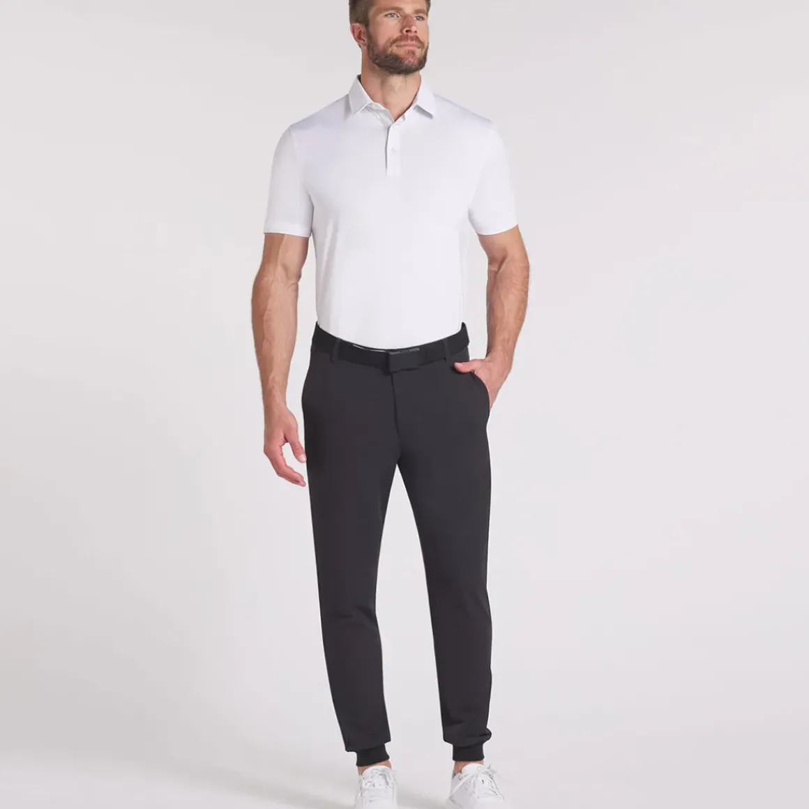 These modern PUMA Golf trousers are designed with traditional button closure and belt loops like regular golf trousers. But engineered with woven stretch jogger-style double-knit fabric and elasticated cuffs for comfort and warmth in everyday life. The material is also moisture-wicking to draw moisture away from the body, ensuring fewer distractions.