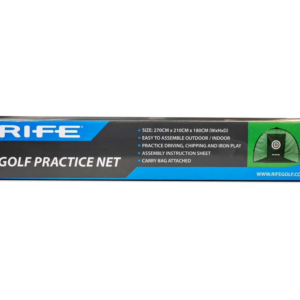 This easy-to-assemble practice net from Rife is the perfect way to improve your game. The construction makes it nice and easy to use and put away and folds neatly for compact storage into the attached carry bag. It is a great practice aid and comes with a targeting zone to test your skills to the limit. This is ideal for either indoor or outdoor use. Dimensions: 270cm (w) x 210cm (h) x 180cm (d).
