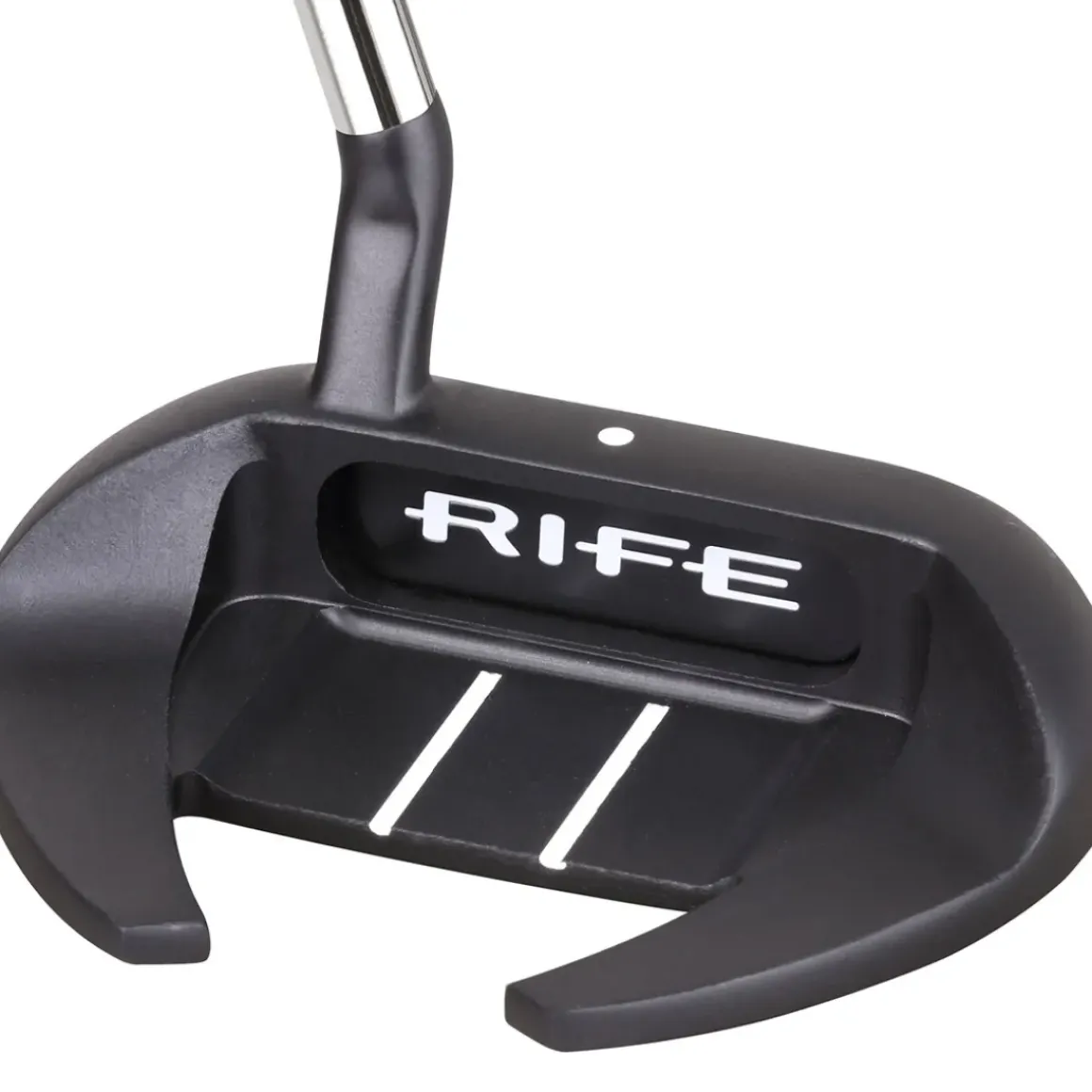 This putter range is every golfer’s dream, with exclusive Rife milled face system (Roll Groove Technology) which offers the optimum in truer roll and putting consistency. The RG3 winged mallet putter has a 3/4 shaft offset and a small over shaft offset neck, with finely tuned non-adjustable sole weights to balance the head for added precision. The putter features a mid-size putter grip and has an attractive black PVD plated finish. To deliver confidence at address and results on any green.
