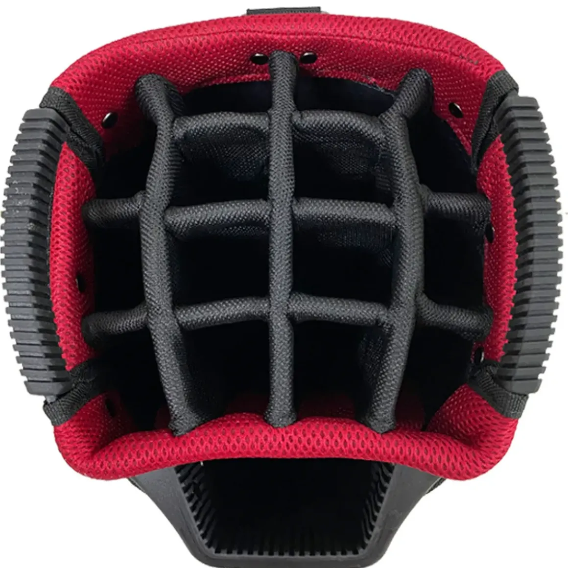 This modern cart bag has a 14-way divider system and is constructed with waterproof materials to keep your equipment nice and dry as you play golf.