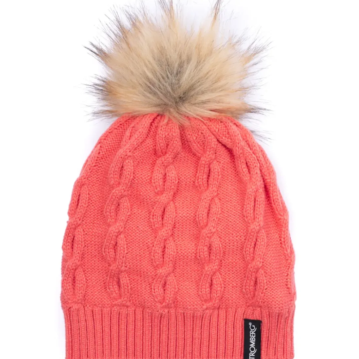 This beautiful hat has a cable knit design with a top pom, and has a fleece lining to give you added protection when it is cold outside.