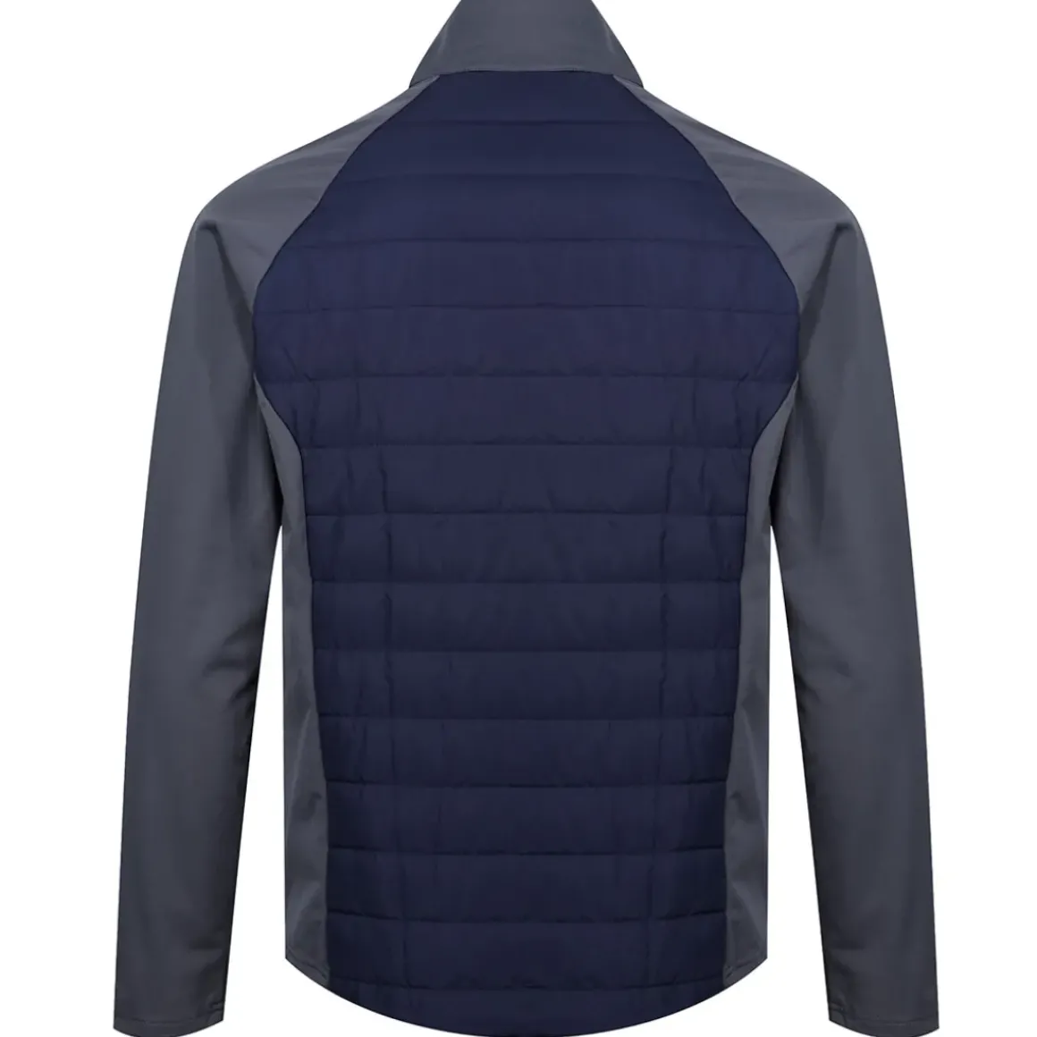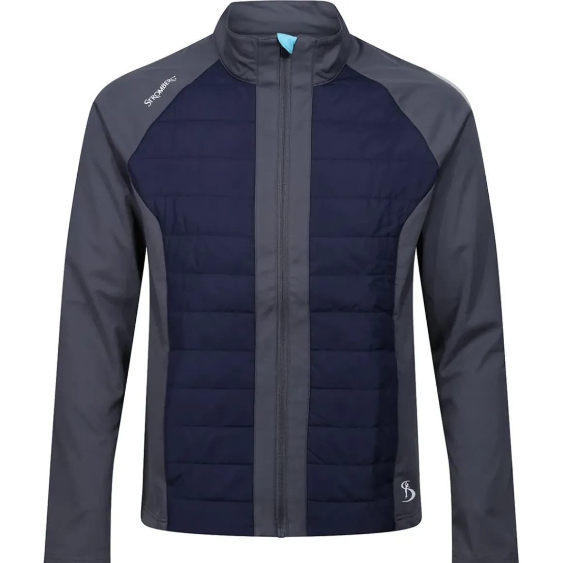 Experience the best of both with this stylish horizontal baffle quilted hybrid jacket that is the perfect addition to any golfer’s wardrobe. It has been constructed with stretch side and sleeve panels with a quilted body panel to keep your body performing at its optimum comfort level. The jacket has a full-length opening, with zip side pockets, and is highlighted with Stromberg branding for authentic appeal.