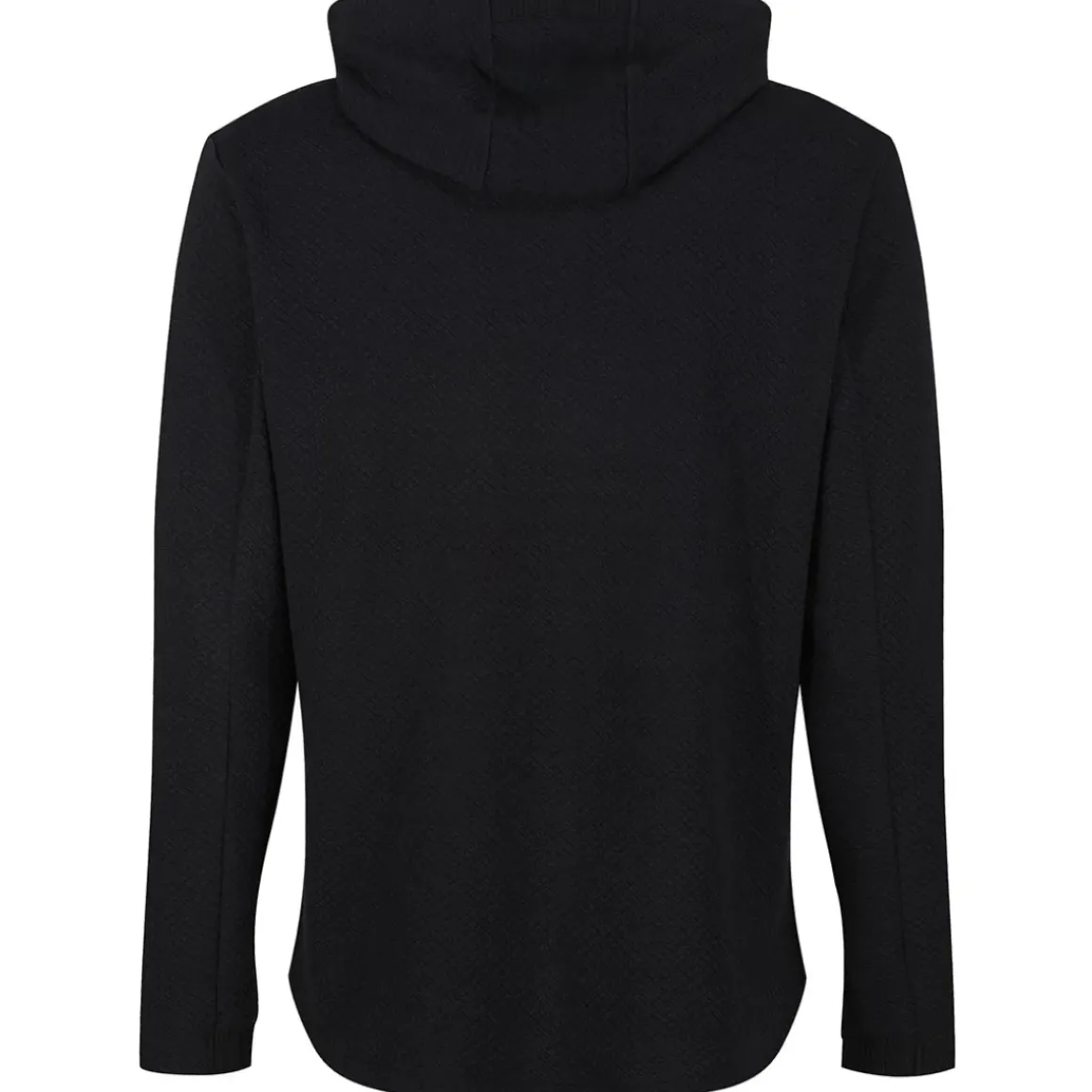 The Stromberg pocket hoody has a 4-way stretch and a textured spacer fabric construction to bring comfort as well as style to your golf swing. Plus is equipped with a durable water-repellent finish and an attached hood for shielding from the elements. The hoodie features a modern design with a bonded chest pocket, and a 1/2 zip opening for easy adjustment, along with silicone branding for maximum appeal.
