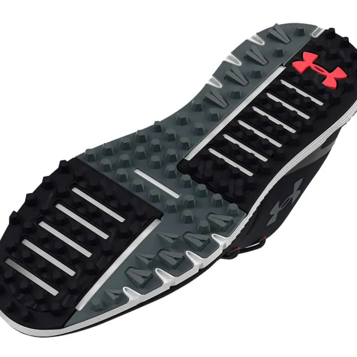 The lightweight spikeless outsole has been constructed with UA rotational resistance moulded traction elements for excellent lockdown traction on a variety of surfaces. It provides more flexibility on or off the golf course without any loss of traction. E Sizing built to better fit athletes with wide feet.