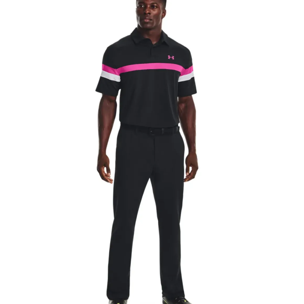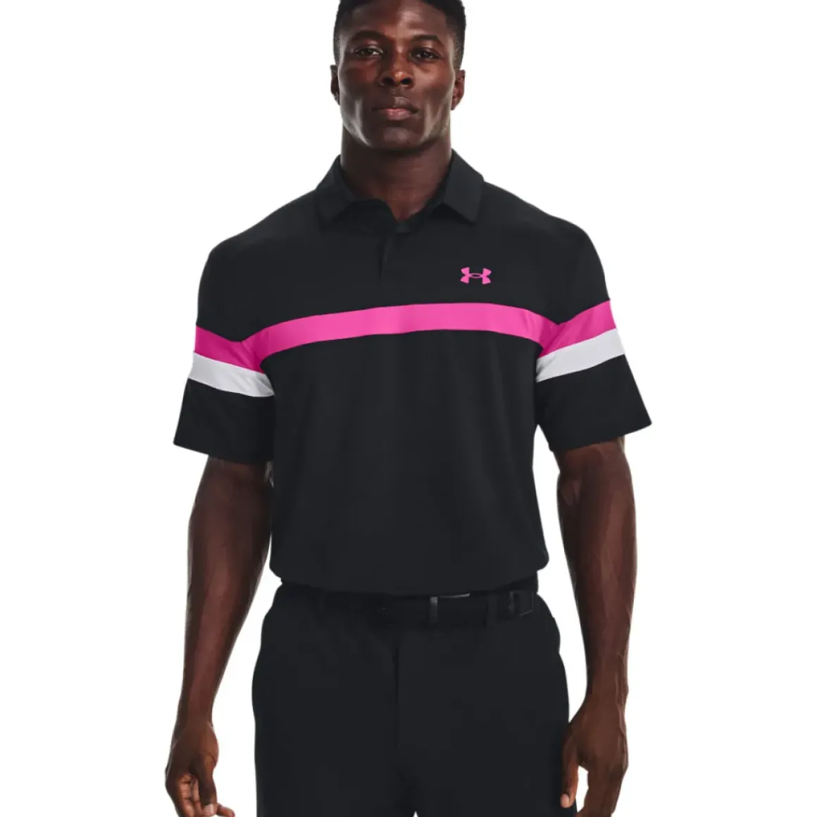 This polo shirt has been constructed with moisture-wicking material that dries really fast, with anti-odour technology for performance as you play. It has a stretch fabric construction to ensure you can move freely and has a loose fit, perfect during any athletic movements associated with the golf swing. The design features modern colour blocking, and a button placket, highlighted with Under Amour logos front and rear.