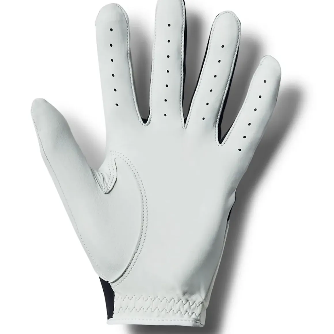 This innovative golf glove has been constructed with a soft Cabretta leather with UA Tour Cool fabric which pulls heat away from your skin, to make your hand feel cooler. This is the perfect glove to wear in the heat, with added micro-perforations to increase ventilation. Plus wicks sweat and dries really fast for fewer possible distractions as you perform. The glove has a seam taping construction to provides a smooth sleek fit, with a built-in closure tab to provide adjustability.