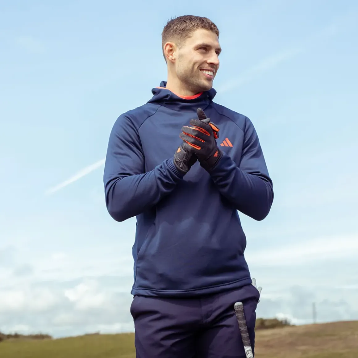 These gloves are constructed with a double-knit polyester fabric for warmth and comfort as you play golf. A practical glove to keep your hands warm during cold weather, and have a faux suede palm and touchscreen-compatible thumb and index fingers so you can use your phone or GPS device, in between holes. The hook-and-loop strap lets you cinch up the fit, so you can swing through with confidence. .