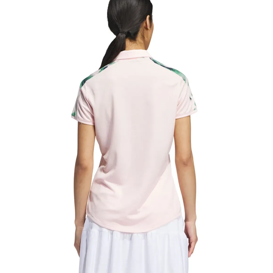 Stay stylish on the golf course with this adidas Golf women’s Ultimate365 printed polo shirt. This perfect blend of golf performance and fashion-forward design is knit from 100% recycled polyester, keeping you comfortable while reducing environmental impact. The regular fit, scoop hem, self-collar and placed graphic add a distinctive touch to your look, finished with a discreet performance logo on the right bottom hem.
