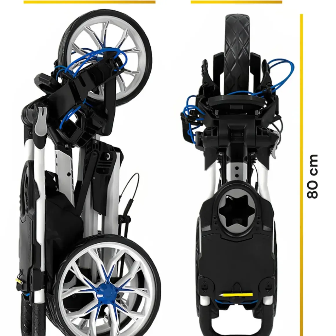 The all-new BagBoy Slimfold golf trolley is a stylish, ultra-lightweight, compact push trolley. Engineered with a single-motion spring-loaded unfolding mechanism, ensuring easy unfolding or folding into the tightest of spaces.