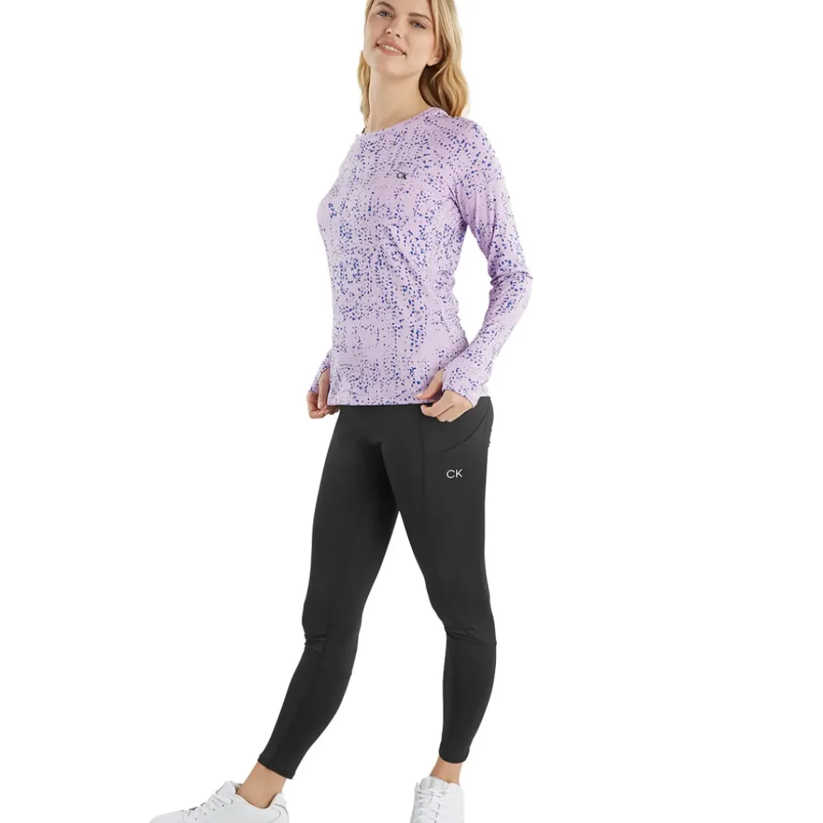 Up your golf game this season in this vibrant print long-sleeved Calvin Klein Pebble t-shirt. Made from a silky soft and smooth fabric with added stretch for a flattering fit. This can be worn as a base layer or will work hard on its own too. Featuring a scoop neck design with raglan sleeves that allows for enhanced freedom of movement. Constructed from recycled polyester for a more sustainable future.
