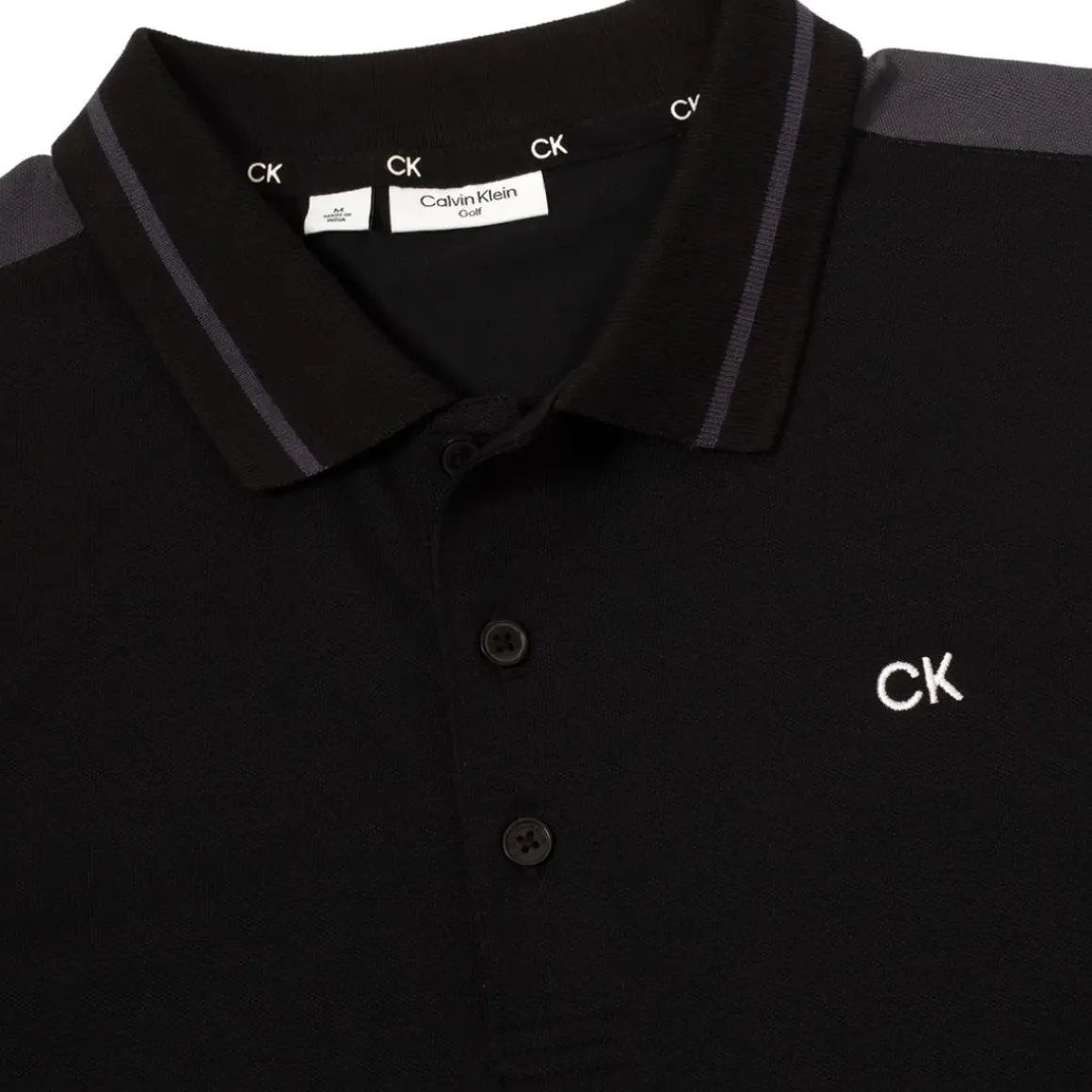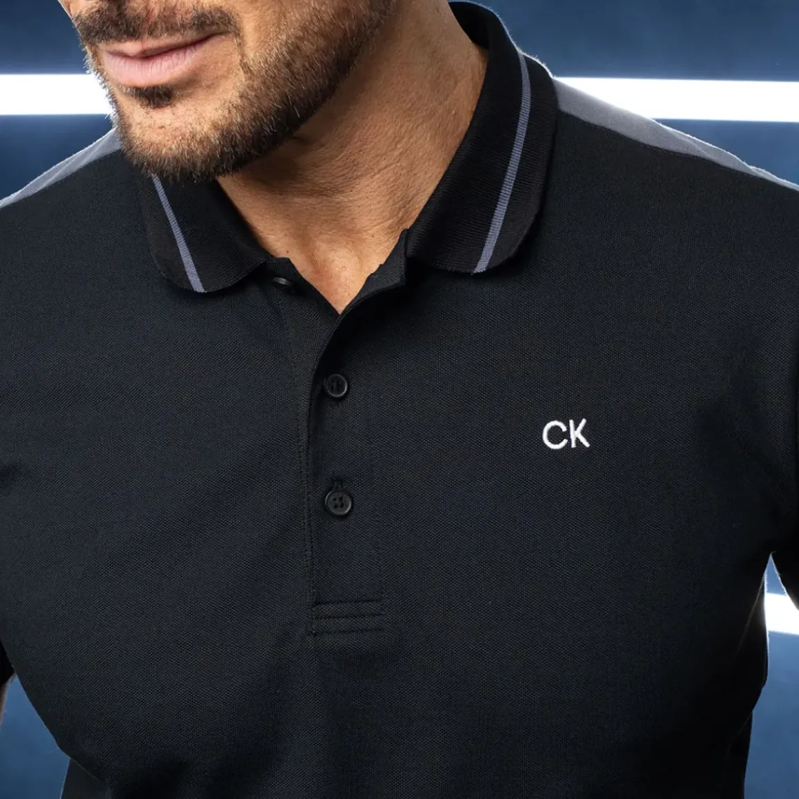 Finely crafted Calvin Klein performance pique polo shirt is highlighted with subtle contrast cut and sew panels at the shoulders and sleeves. Constructed with a high-performing cotton blend Dri-Breeze fabric, super lightweight; moisture-wicking, quick-drying, and easy-care/non-iron. Designed with a sturdy knitted collar with a tonal contrasting stripe, and the back neck is reinforced with CK branded taping that also features at the side slits.