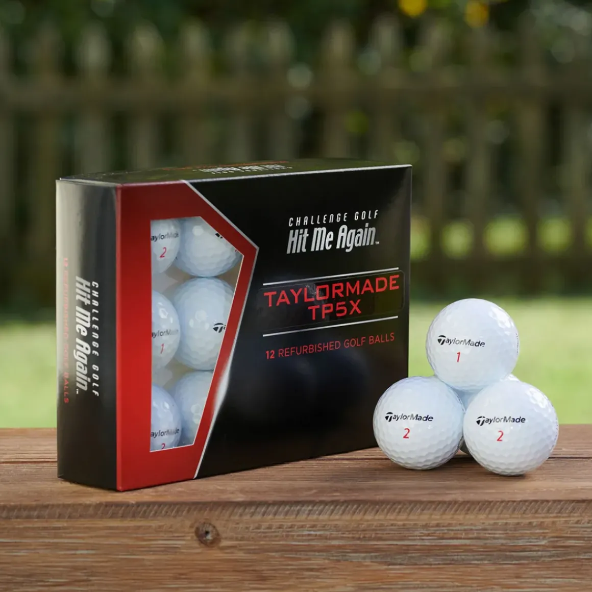 Play with a premium golf ball but at a fraction of the price with the fantastic Challenge Golf Refurbished TaylorMade TP5X Golf Balls. Refurbished to a level that is like new, these golf balls have been rescued from various hazards and restored close to their original performance characteristics.