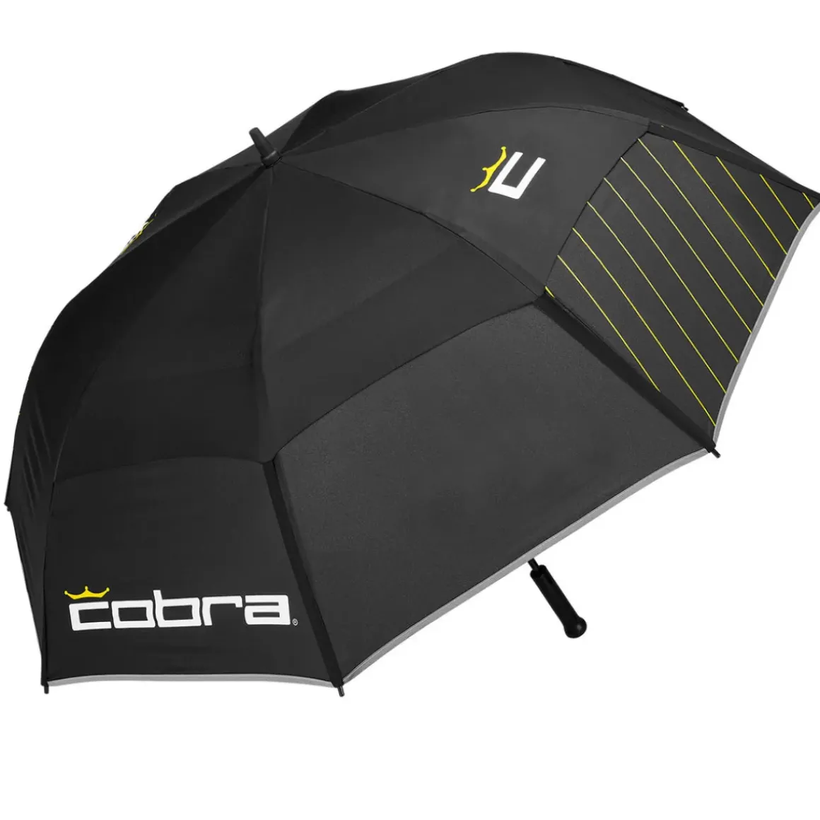 The double canopy construction of this umbrella has been designed to allow air to pass through to resist inversion in high wind situations. It has an automatic one-touch opening with a foam padded grip handle for extra comfort when carrying, and is branded with Tour authentic Cobra branding.