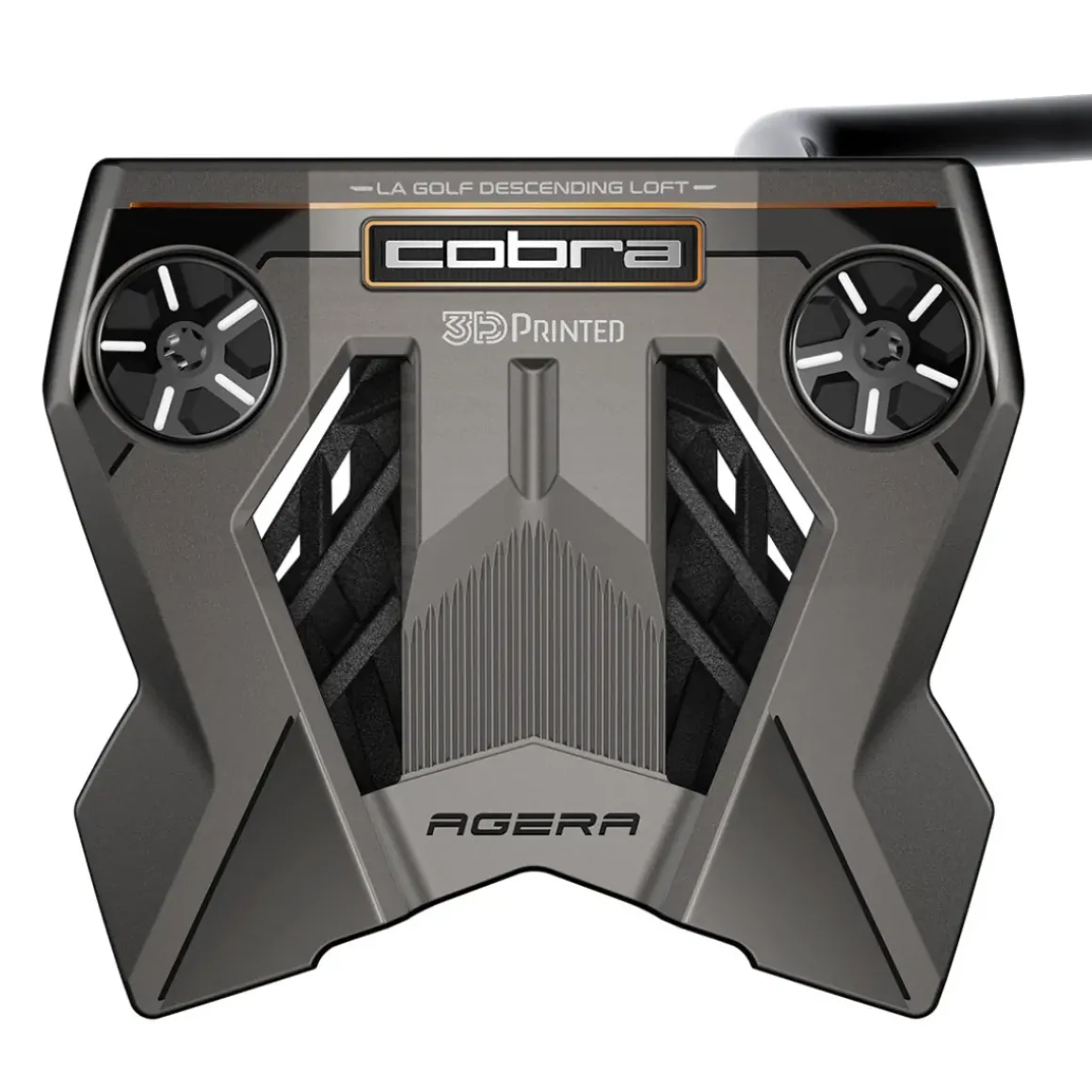 The COBRA King Agera putter has a multi-material 3D printed construction that brings ultimate stability in a mallet putter shape.