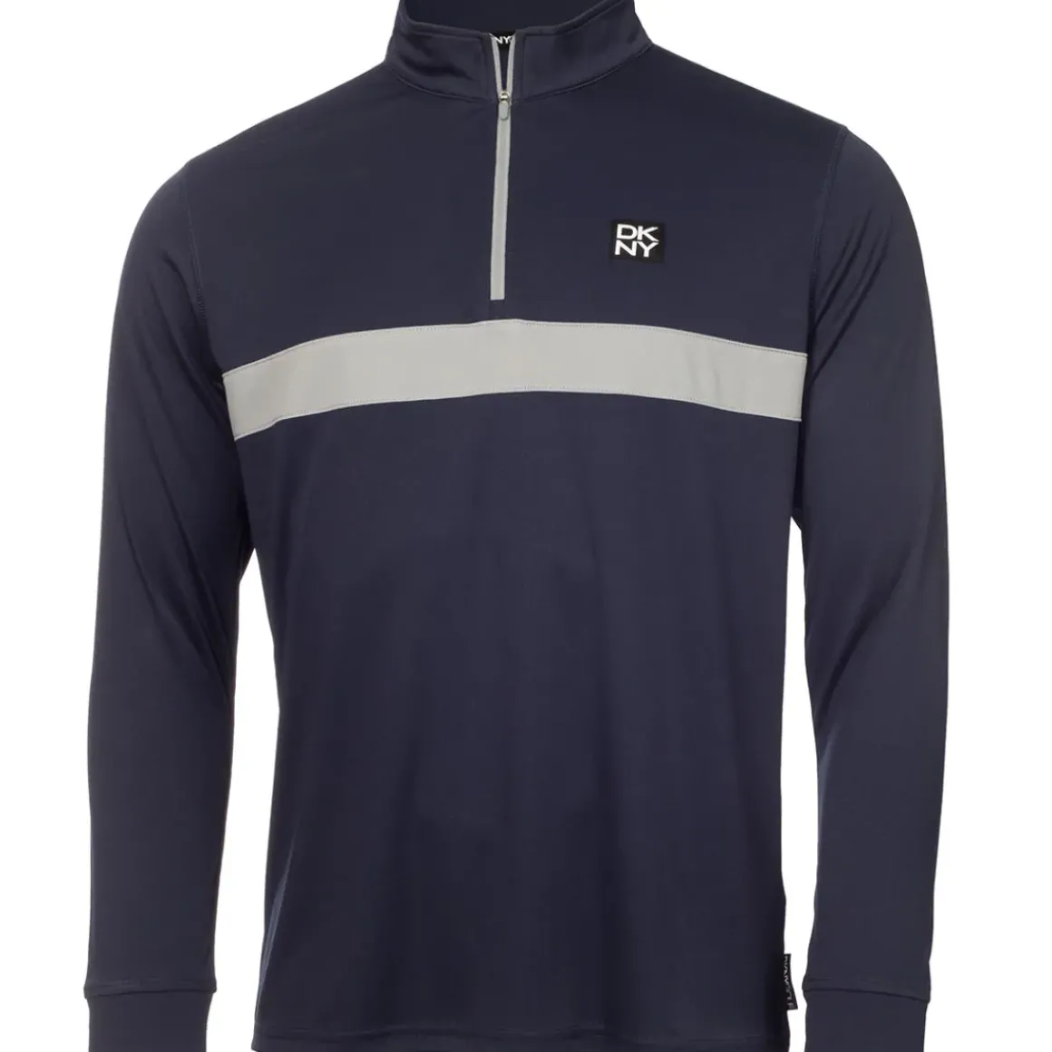 This premium midlayer from DKNY features contrast cut and sew panels across the chest for a classic sporty look. Made with a performance jersey fabric that is lightweight and breathable for all-day comfort, perfect for activities such as golf. It is moisture-wicking and has a 1/4 zip opening for adjustable cooling when required. Highlighted with a DKNY logo on the left chest and branded DKNY back neck tape for additional detail.