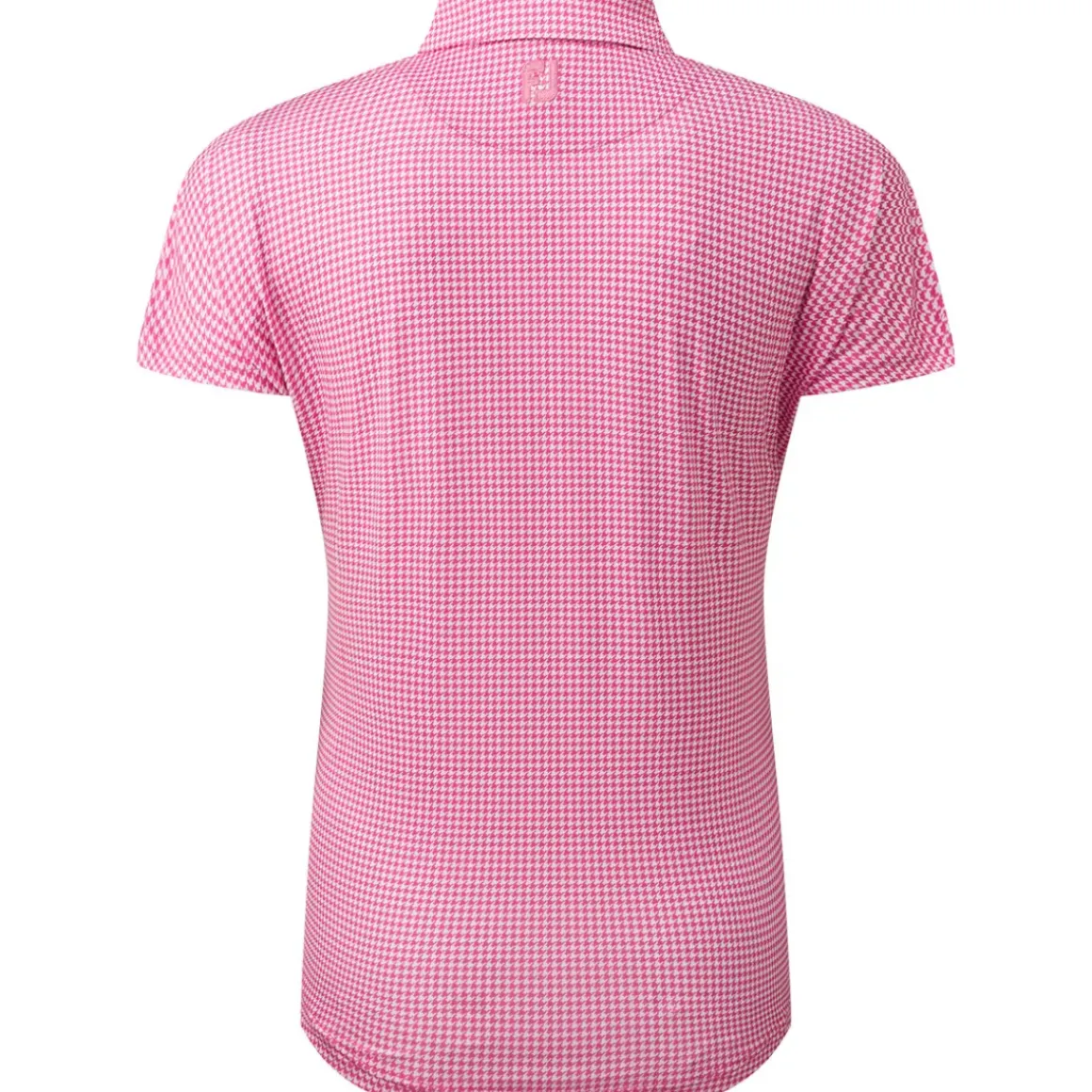 This FootJoy capped sleeve polo shirt has been created with ProDry Lightweight stretch lisle fabric. An exclusive performance fabric that provides moisture management by drawing access sweat away from the body, plus is easy care to look great with minimum effort. Styled in an all-over houndstooth print, a zip placket and collar, plus a coordinated FJ logo on the rear yoke for authenticity.