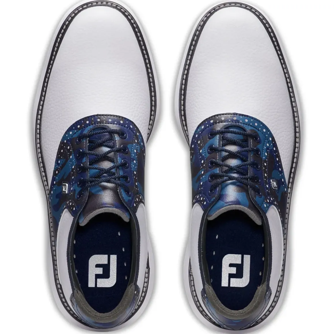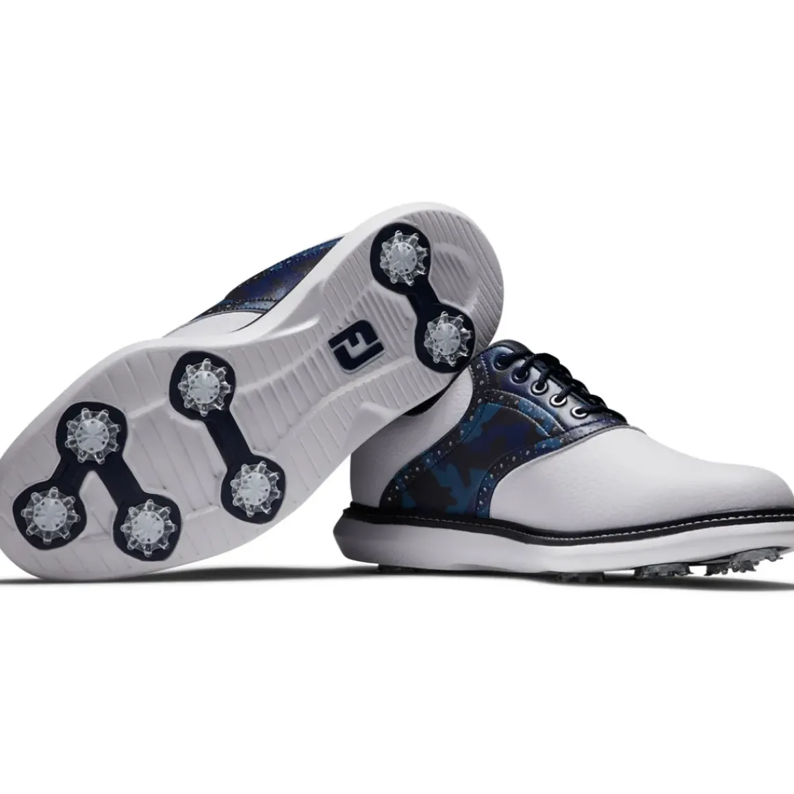 The FootJoy Traditions golf shoe offers a clean iconic style. Lightweight and incredibly comfortable, with SoftSpikes Pulsar low-profile cleats for maximum grip as you play golf.