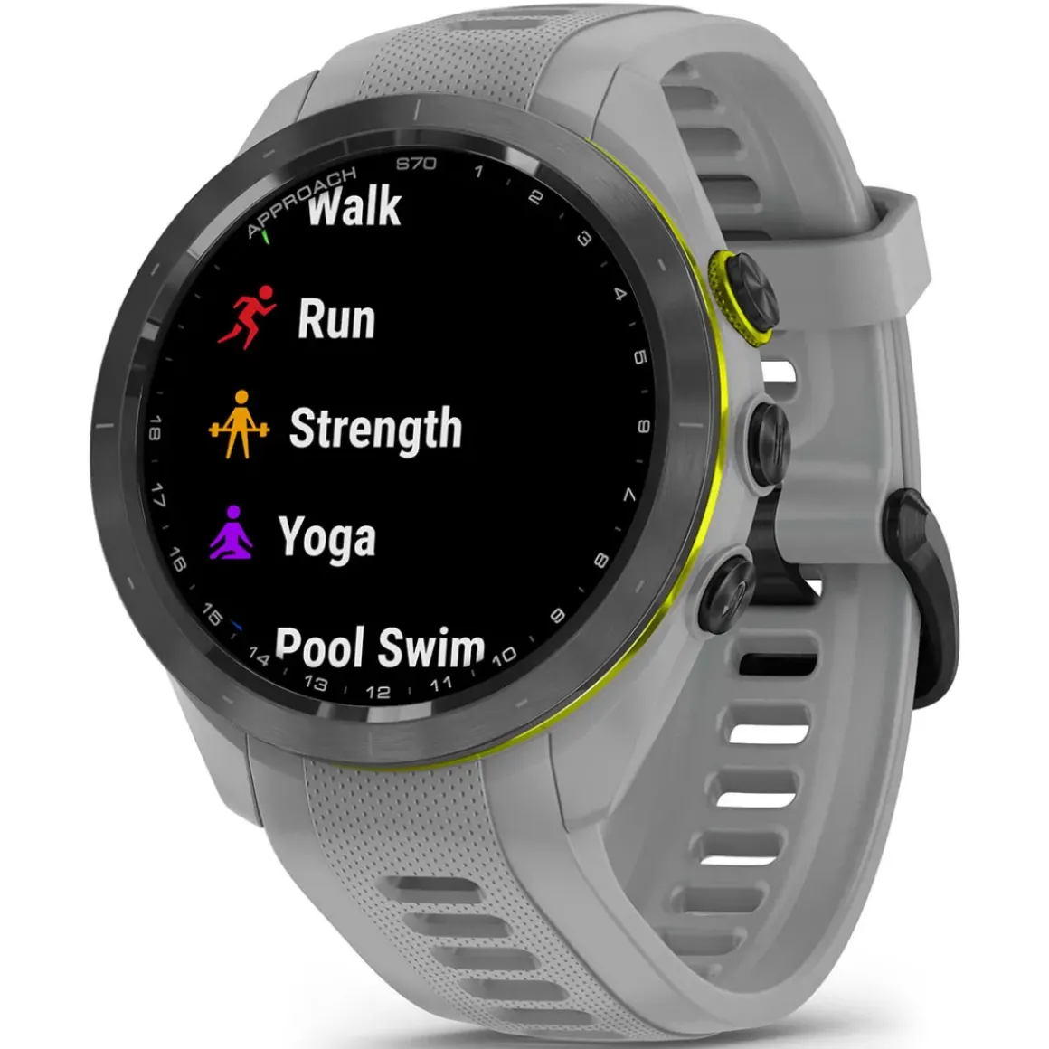 Fine-tune your performance on and off the course with the bright AMOLED display and premium golf features of the Garmin Approach S70 GPS smartwatch.