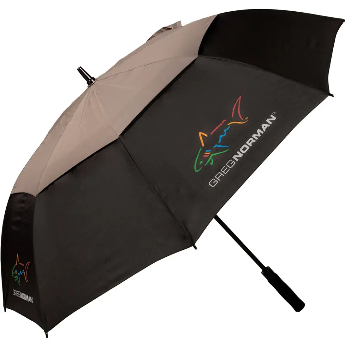 It has a 62″ double canopy that allows wind to pass through both canopies to resist inverting. It has a fiberglass shaft that is lightweight and durable with a molded foam handle for carrying comfort. The umbrella has auto-opening functionality for easy deployment and is highlighted with Greg Norman’s signature logos for authenticity.
