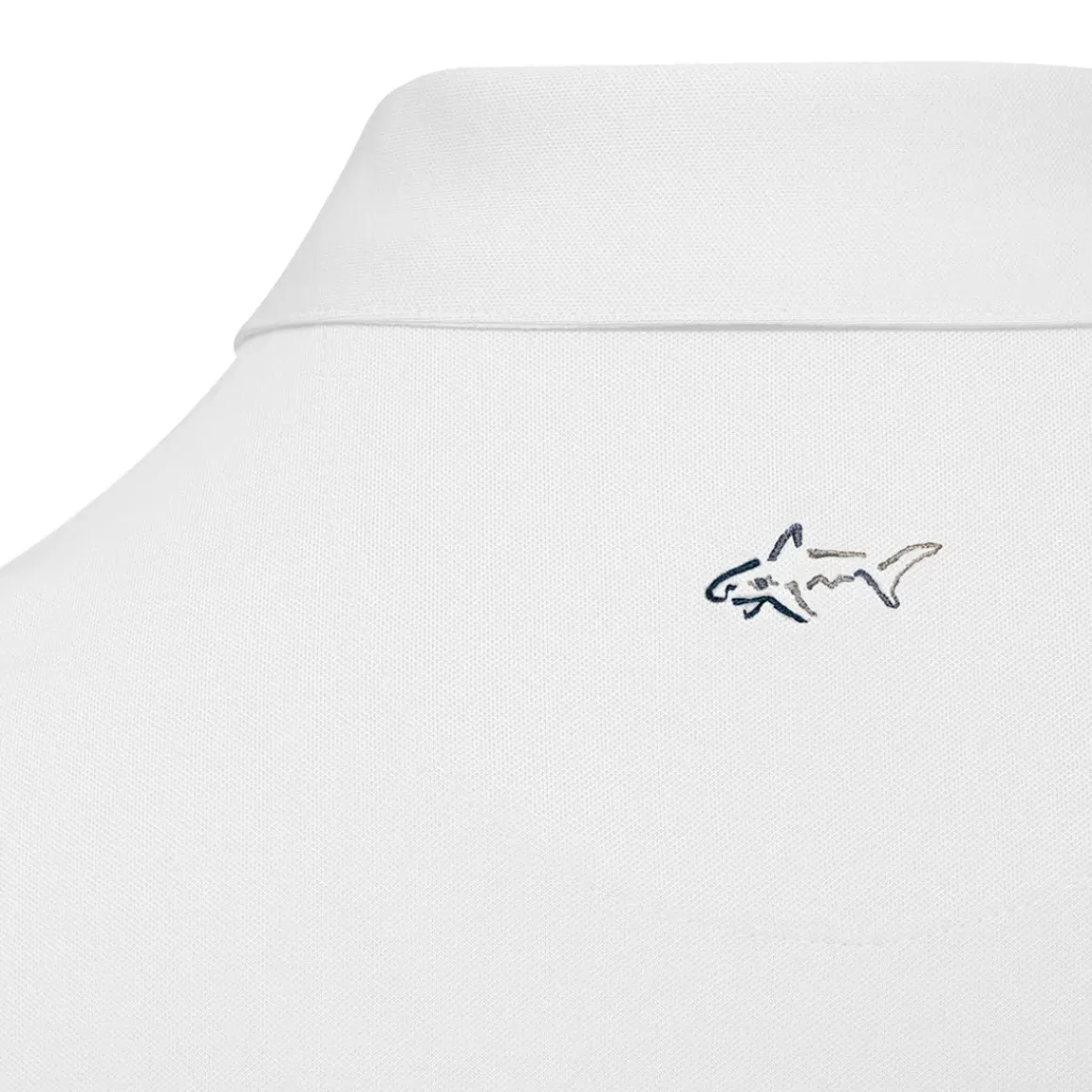 This Greg Norman polo shirt has been made to perform with eco-driven natural, repurposed, and recycled materials, for sustainability and a positive impacting the environment. The polo shirt offers freedom of movement and moisture management, which allows the shirt to breathe as you perform. Plus offers naturally inherent anti-static performance, is anti-microbial and anti-odour for fewer distractions as you play golf. Finer details include a tailored collar and a signature embroidered 4-colour Shark logo on the left chest.