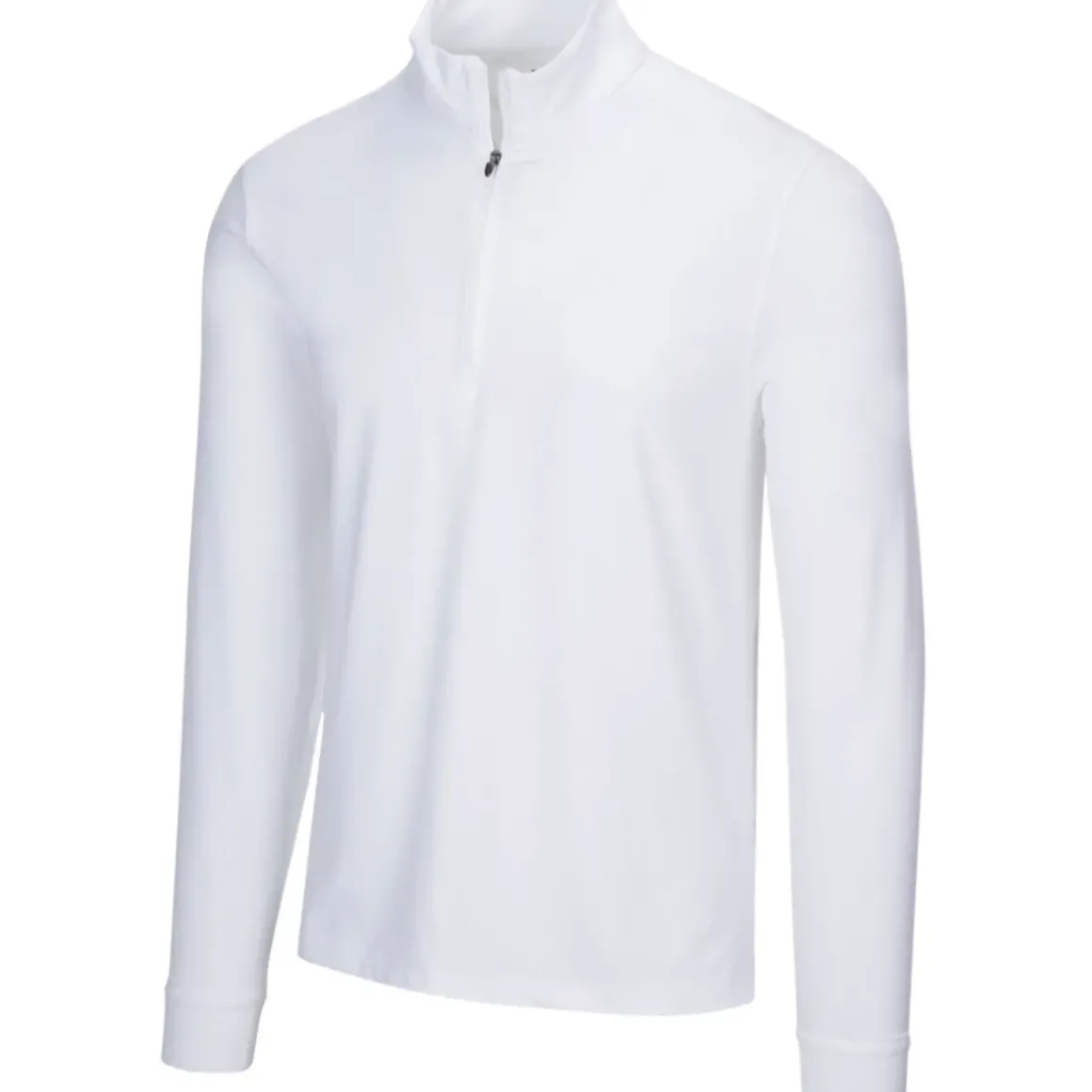 Greg Norman Collection is a full offering of Ladies’ performance and golf-inspired apparel. This soft heathered performance layer has a luxurious feel to give you the confidence to play at the highest level of golf. It has a performance stretch construction for freedom of movement and is equipped with a PlayDry moisture management system. The system wicks access perspiration away from the skin and transports it to the garment’s outer layer so it can evaporate into the air. It also has an extreme 50+ UPF protection rating to allow you to play in the sun without harming your skin. Other details include a mock neck with a 1/4 zip opening, plus is highlighted with a shark logo on the back collar.