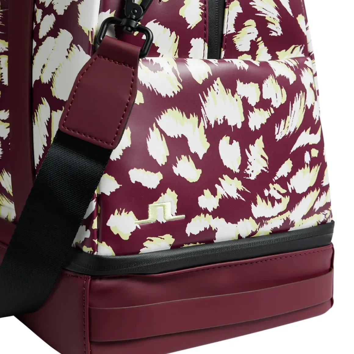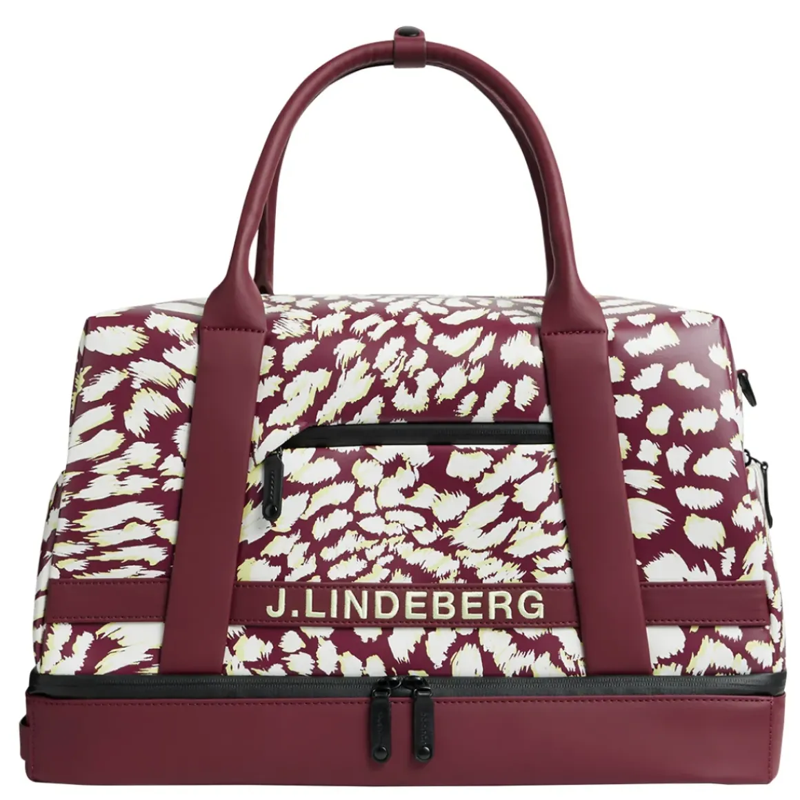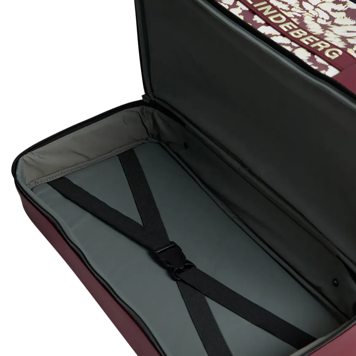 This premium luggage bag has been constructed with durable synthetic leather material, offering around 49 litres of storage. The bag has a large main compartment with a water-resistant zip and includes 2 vent compartments where you can store golf shoes etc. It has top carry handles, a seasonal print, plus J. Lindeberg embroidery and bridge logos front and back to ensure it stands out.