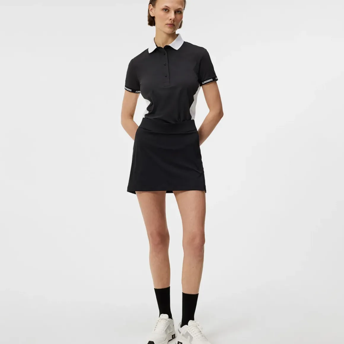 This premium golf skort is sure to give you the inspiration to play better golf as is made with J.Lindeberg`s most loved TX jersey fabric. Which has a 4-way stretch for an unrestricted swing as you play golf, and is equipped with fast drying and moisture-wicking capabilities. A system that works by wicking sweat away from the body, aiding in rapid evaporation. The design features attached inner shorts for added confidence and has a rear zip pocket for additional requirements. Highlighted with an embroidery bridge logo at the back for added distinction.