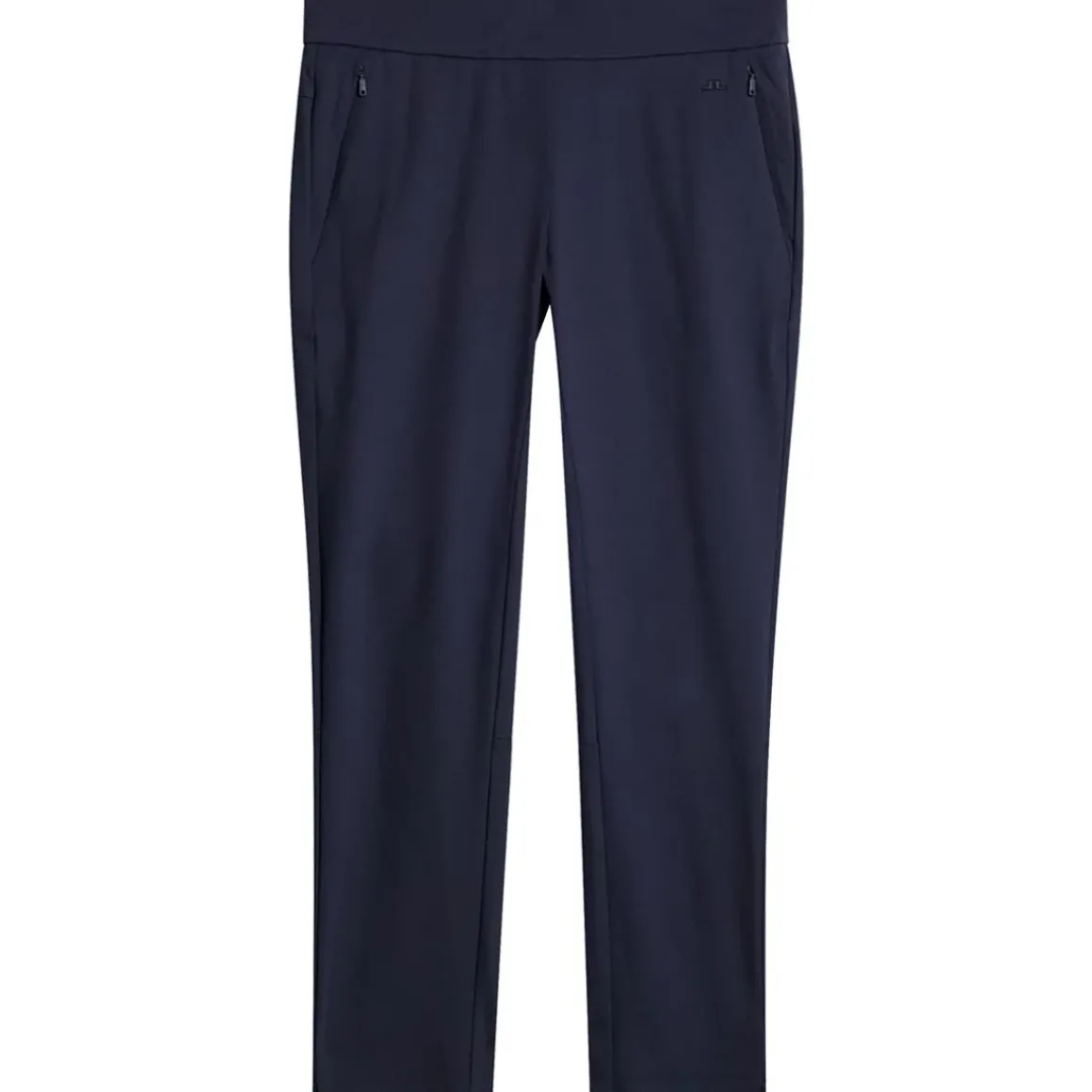 The J.Lindeberg Lea Pull-On golf trousers are made in an ultra-comfort jersey fabric, with a super stretchy construction to cope with the movements associated with the sport of golf. Designed to be performance-orientated by being water-repellent, fast-drying, and windbreaker protection for comfort as you play golf. Equipped with a mid-rise waistline, side pockets with zippers, slit at the bottom hem, and highlighted with a bridge logo on the rear pocket for authenticity.