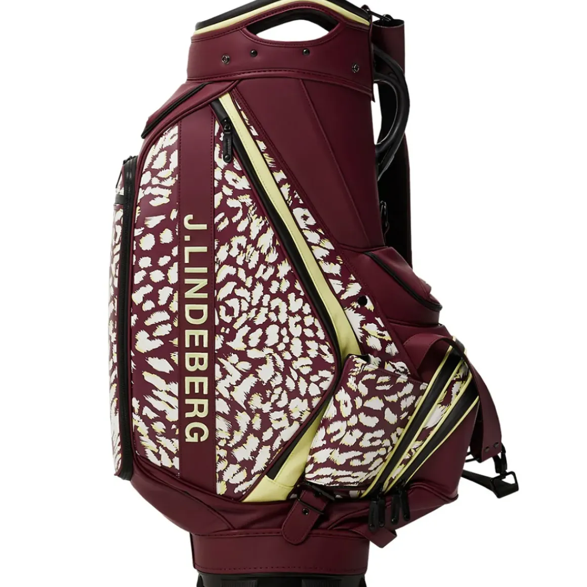 This J.Lindeberg staff bag has a premium and oversized construction to organise like a professional golfer. It has a sturdy synthetic leather material construction, highlighted with printed details and embroidery branding on the front and side panels.